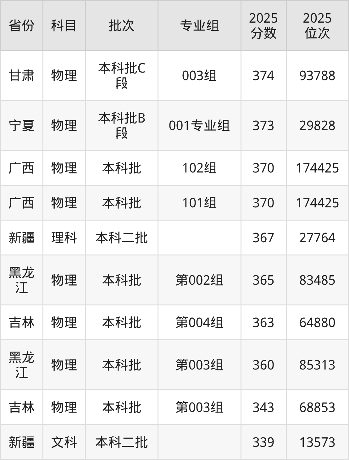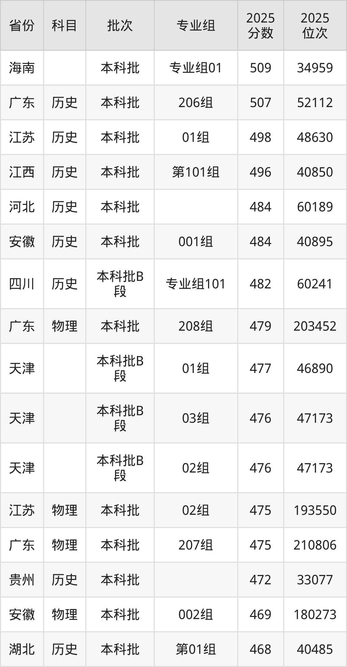 2025年厦门工学院全国录取分数线339分到509分,录取最高在海南(专业组01)、录取最低在新疆(文科)。