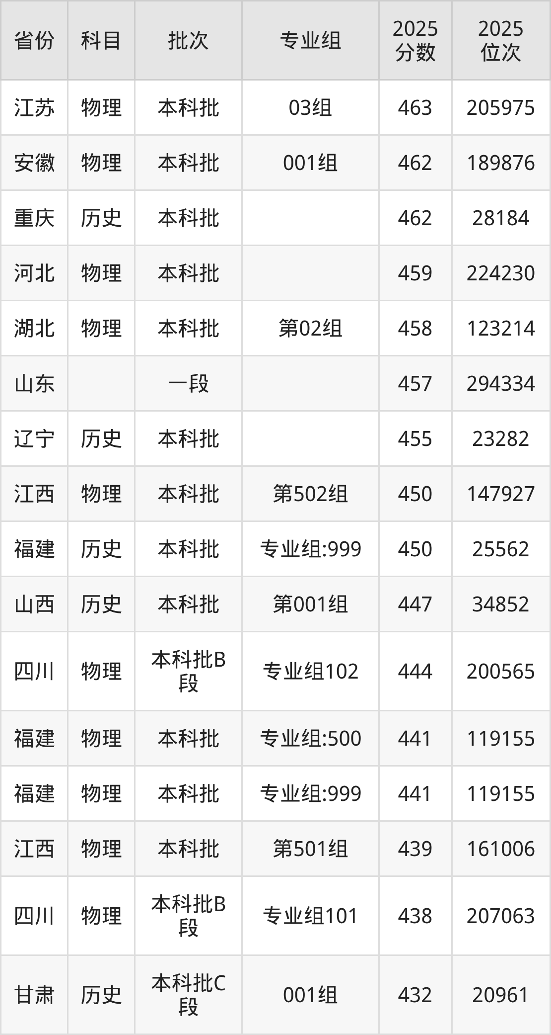 2025年厦门工学院各专业录取分数线从457分到458分不等,录取分数线最低的专业是电气工程及其自动化;录取分数线最高的专业是智能制造工程。本文将展示厦门工学院所有专业最低分数线及位次,供2026届高考生参考。