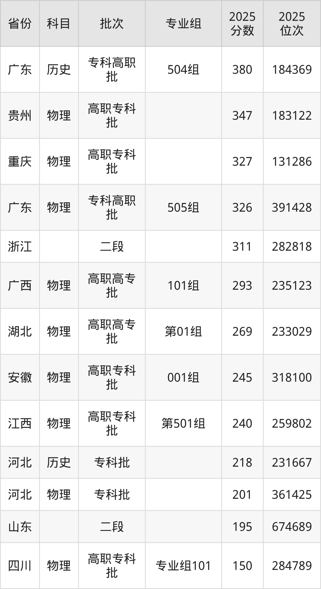 下面是2025年厦门兴才职业技术学院在全国各省录取最低分数据及位次,各位考生也可作为一个参考。
