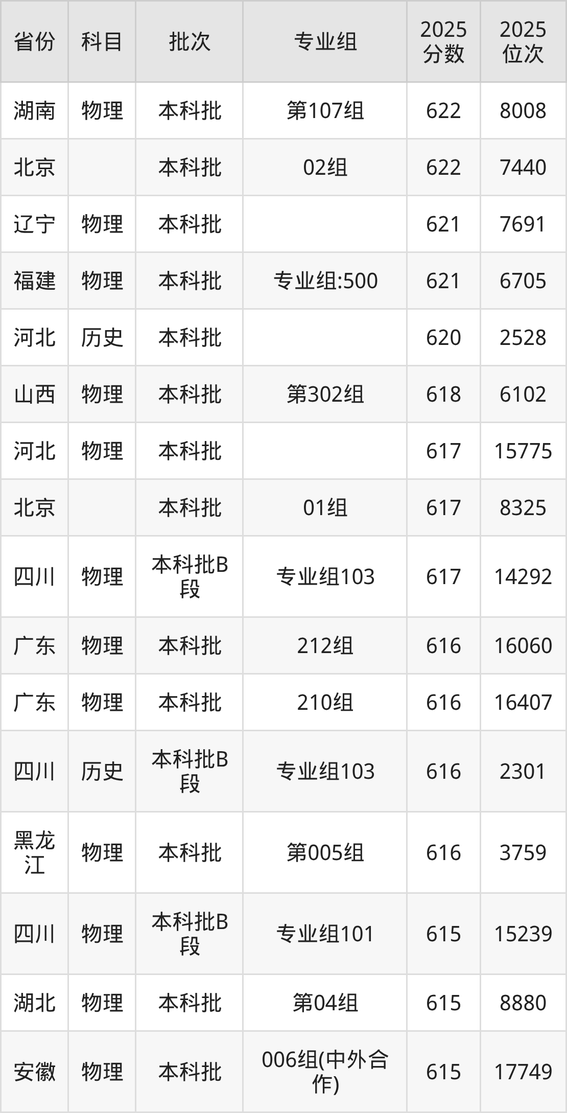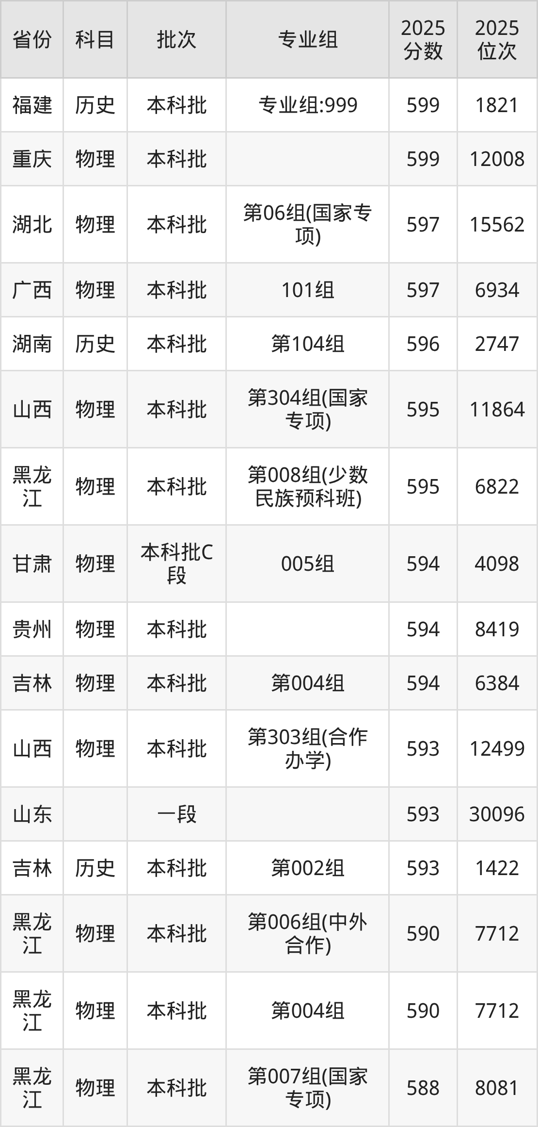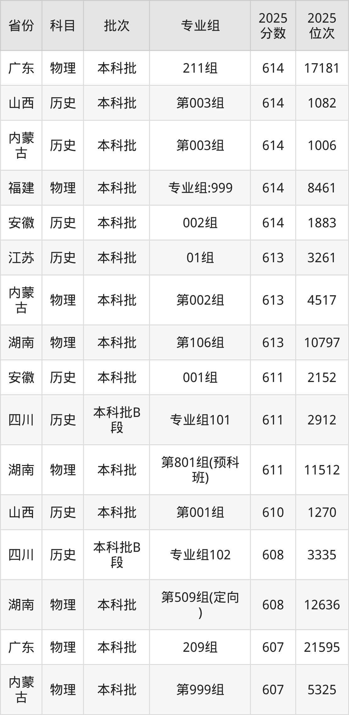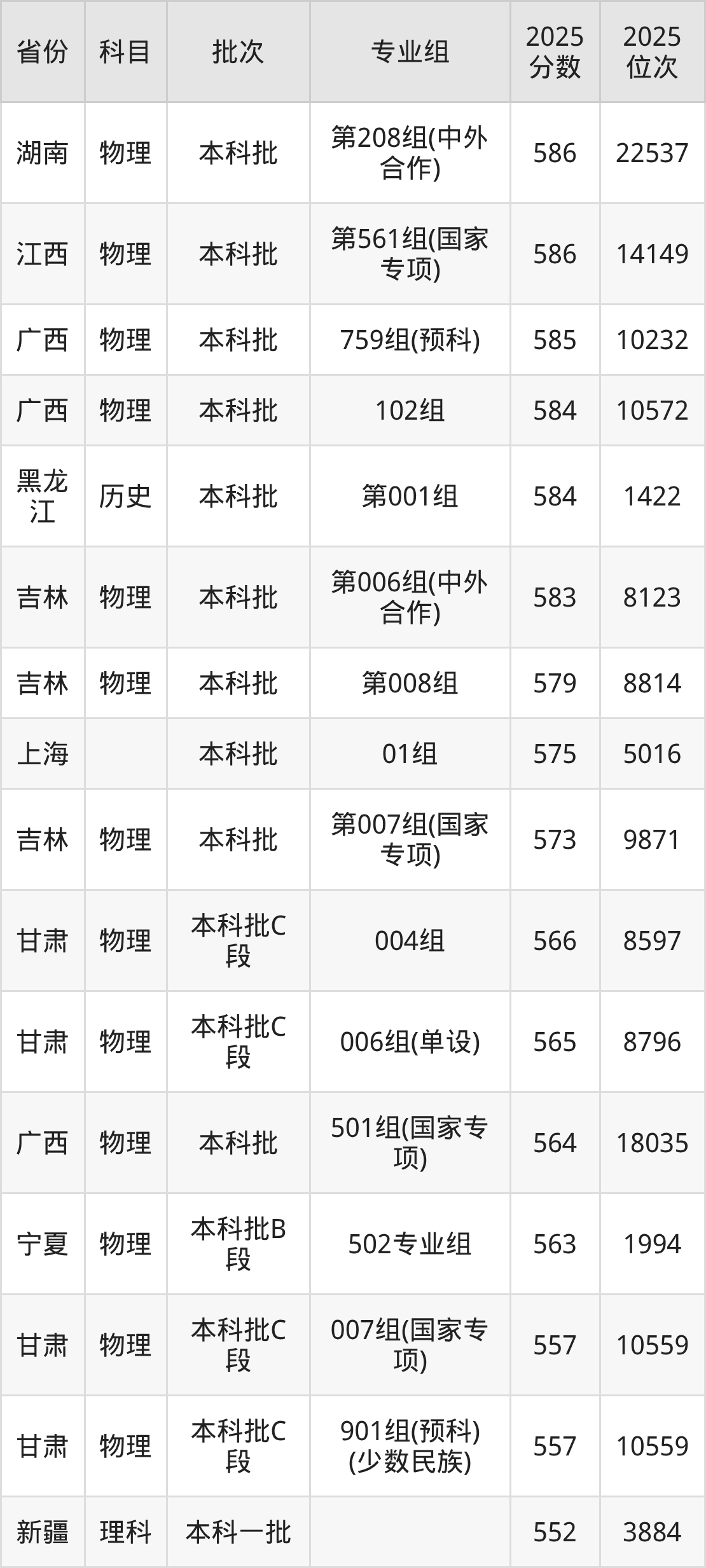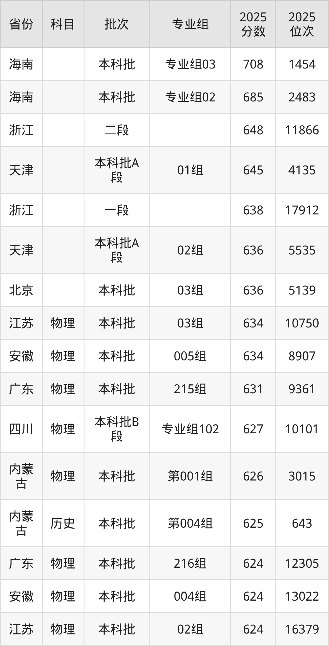 下面是2025年东北大学在全国各省录取最低分数据及位次,各位考生也可作为一个参考。