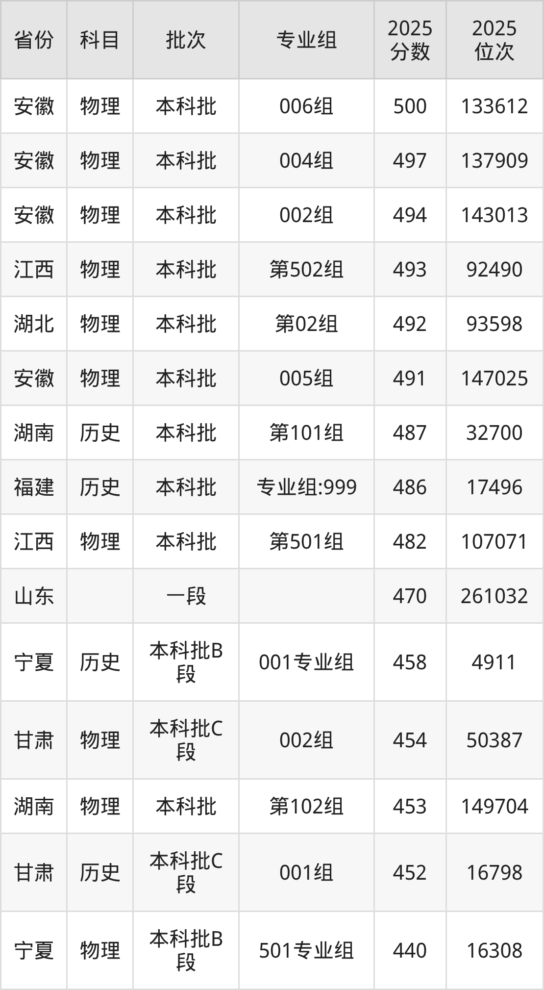 2、计算机科学与技术:495分、位次198626名;
