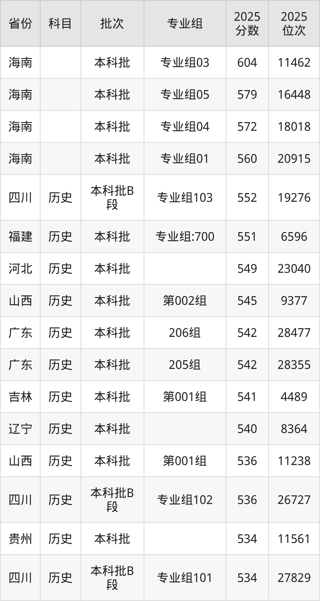 3、历史学:535分、位次108722名;