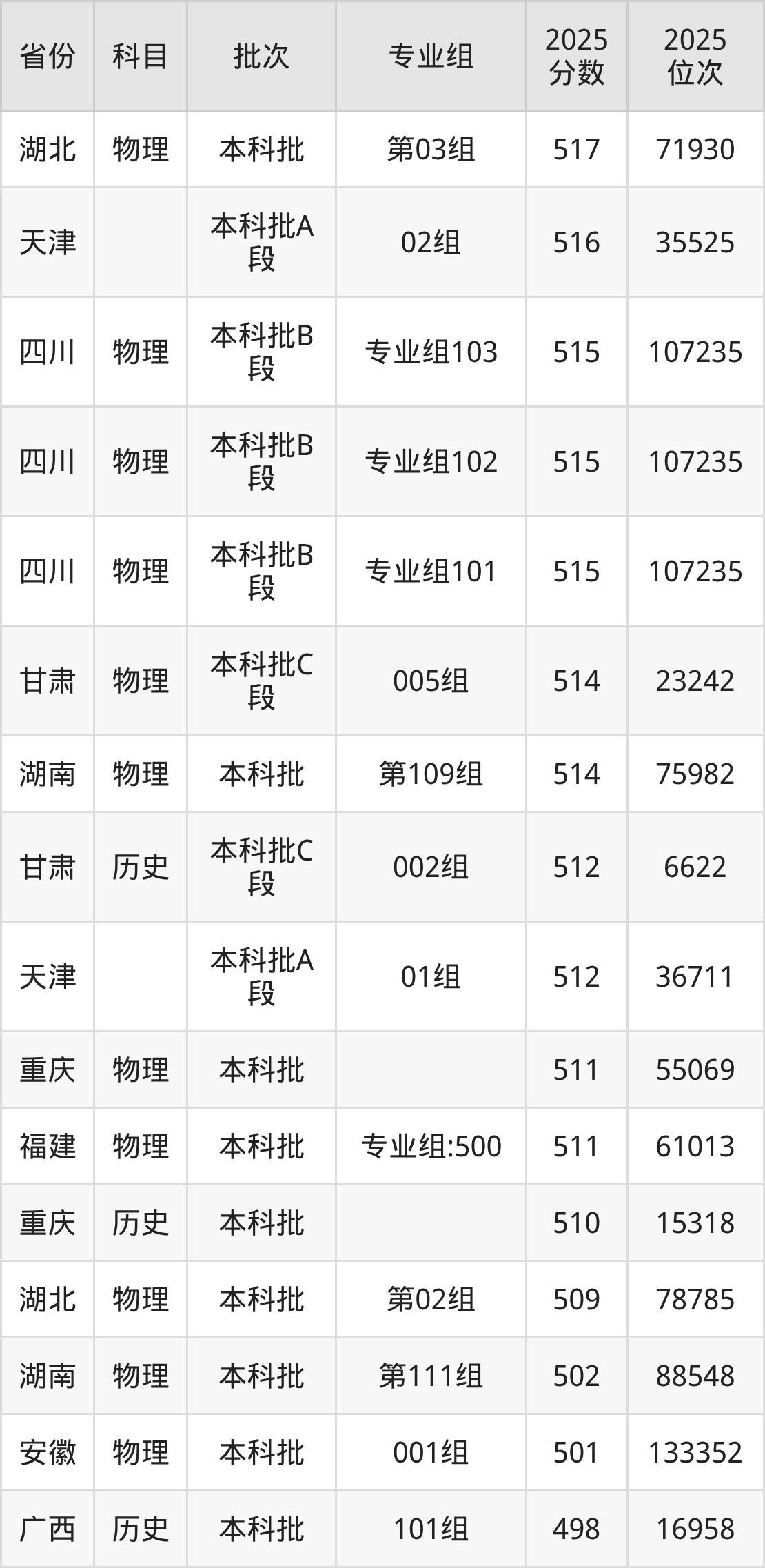6、计算机科学与技术:525分、位次128153名;