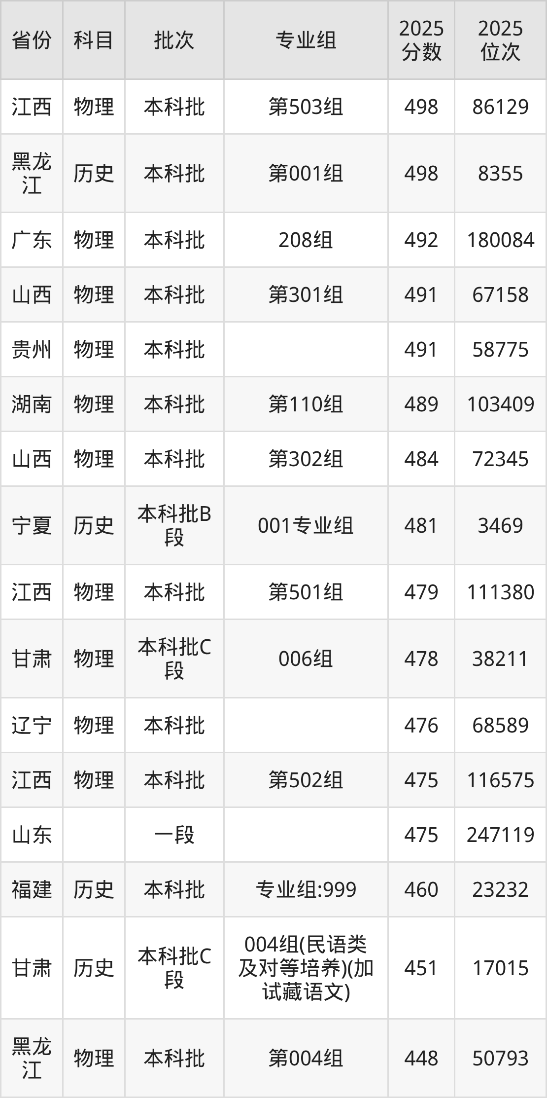 下面是2025年青海师范大学在全国各省录取最低分数据及位次,各位考生也可作为一个参考。