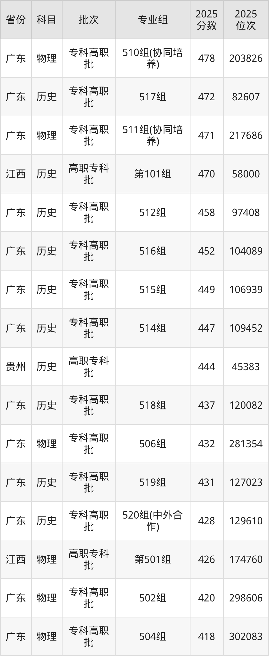 参考2025年河北省高考招录数据,按照分数线从高到低依次为大家展示广东理工职业学院各个专业录取分数线。