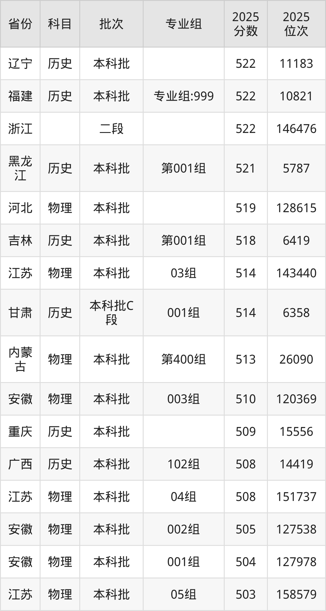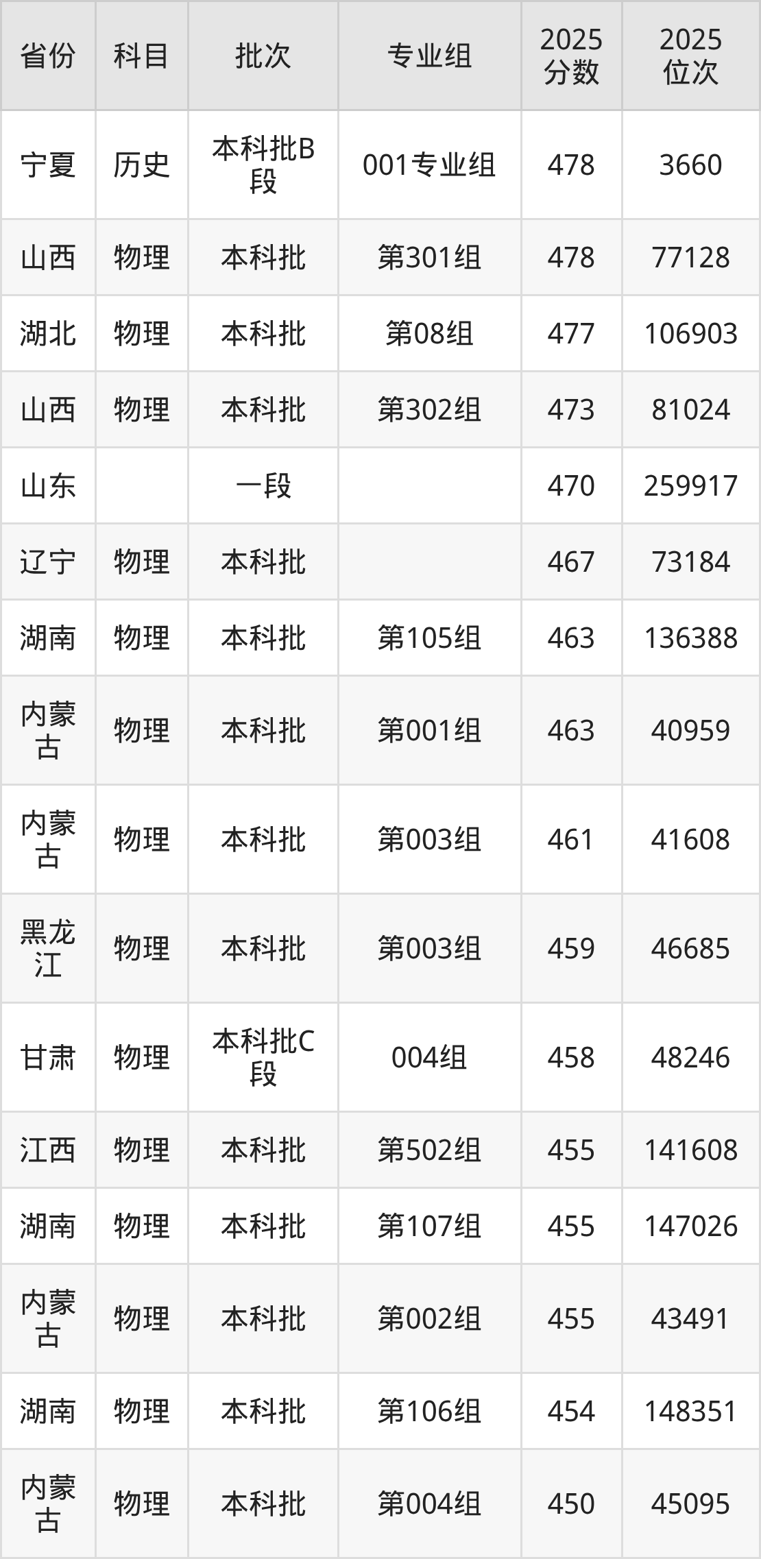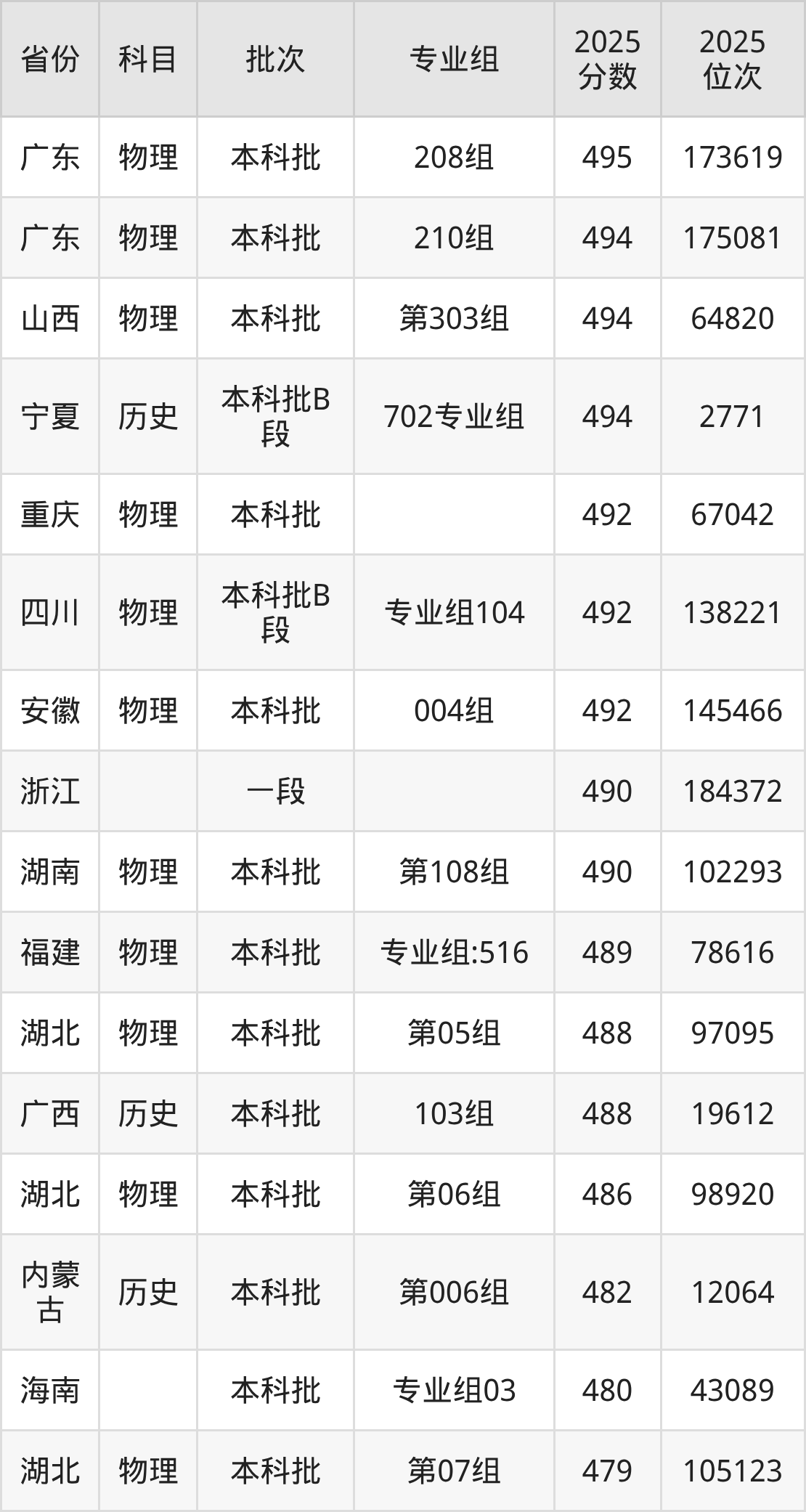 下面是2025年潍坊学院在全国各省录取最低分数据及位次,各位考生也可作为一个参考。
