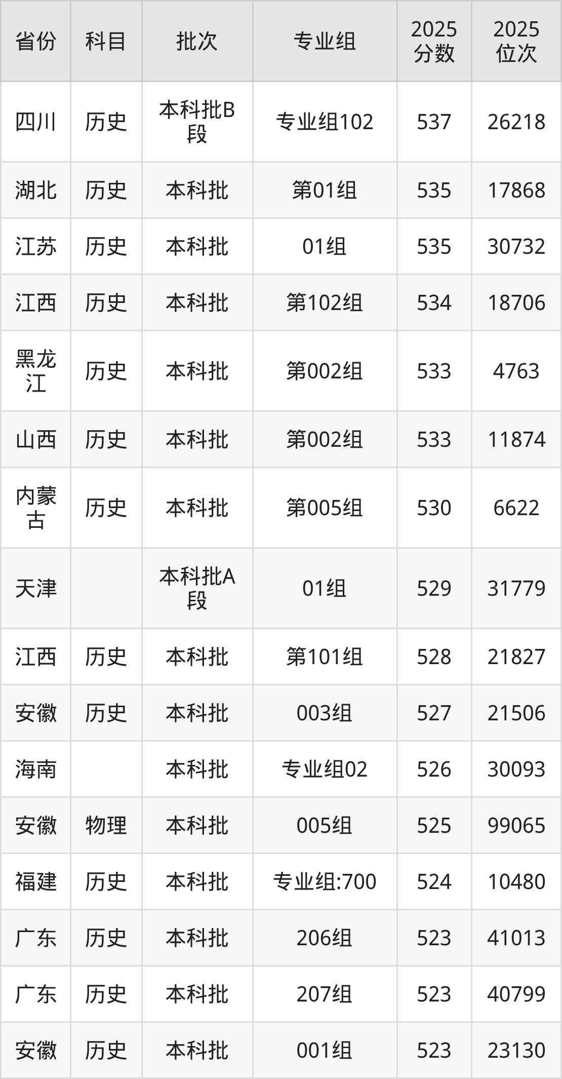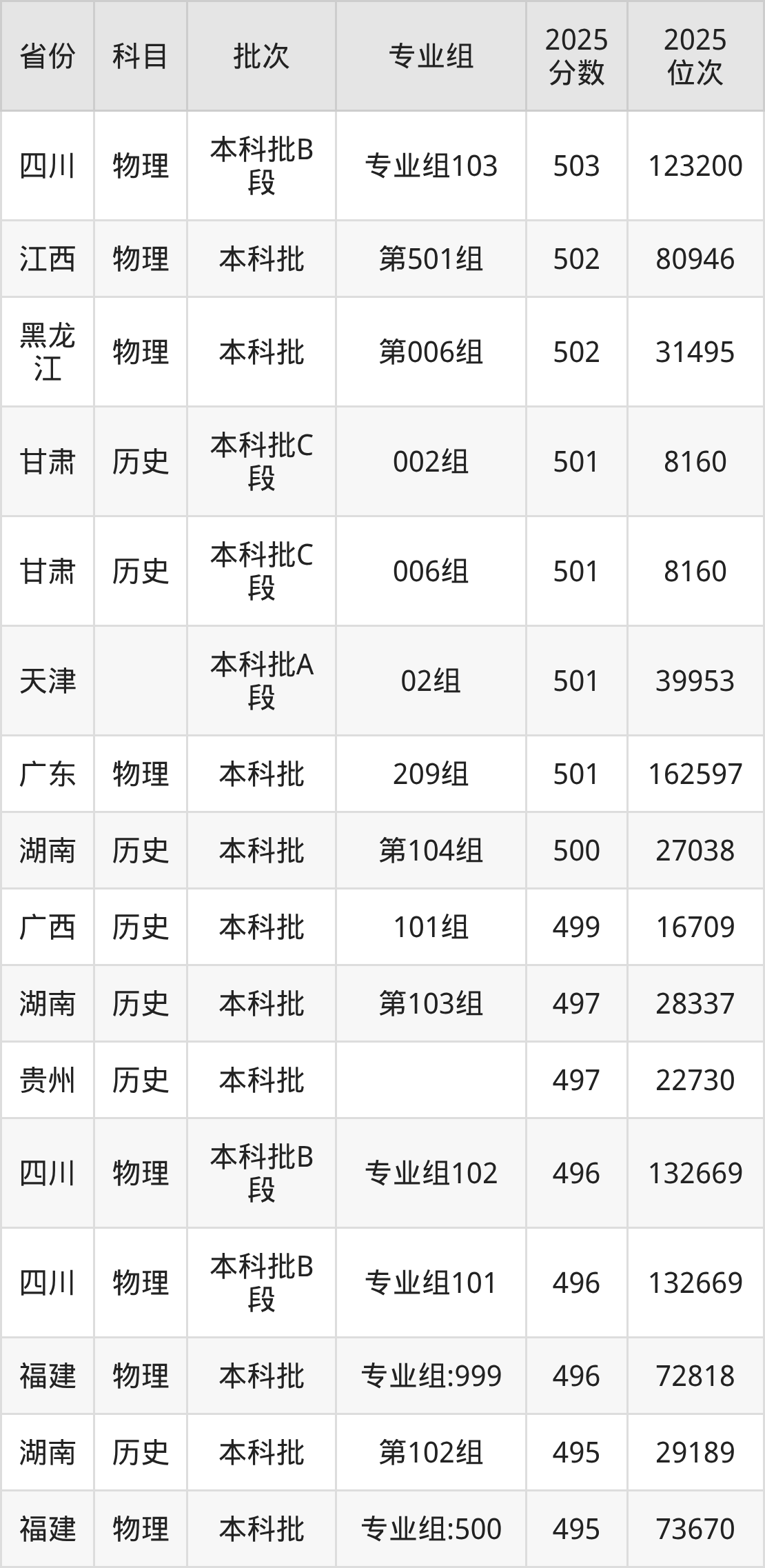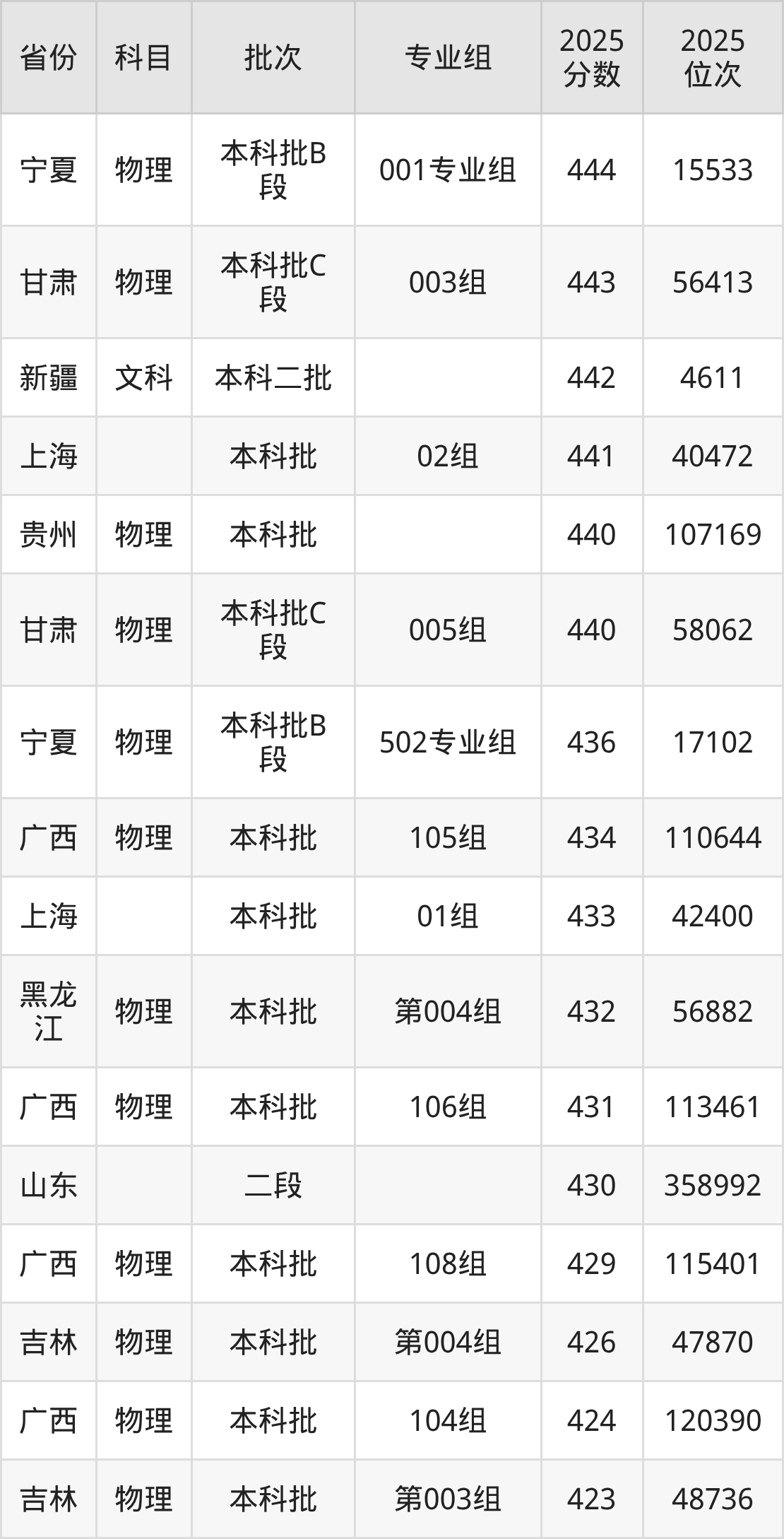 下面是2025年潍坊学院在全国各省录取最低分数据及位次,各位考生也可作为一个参考。