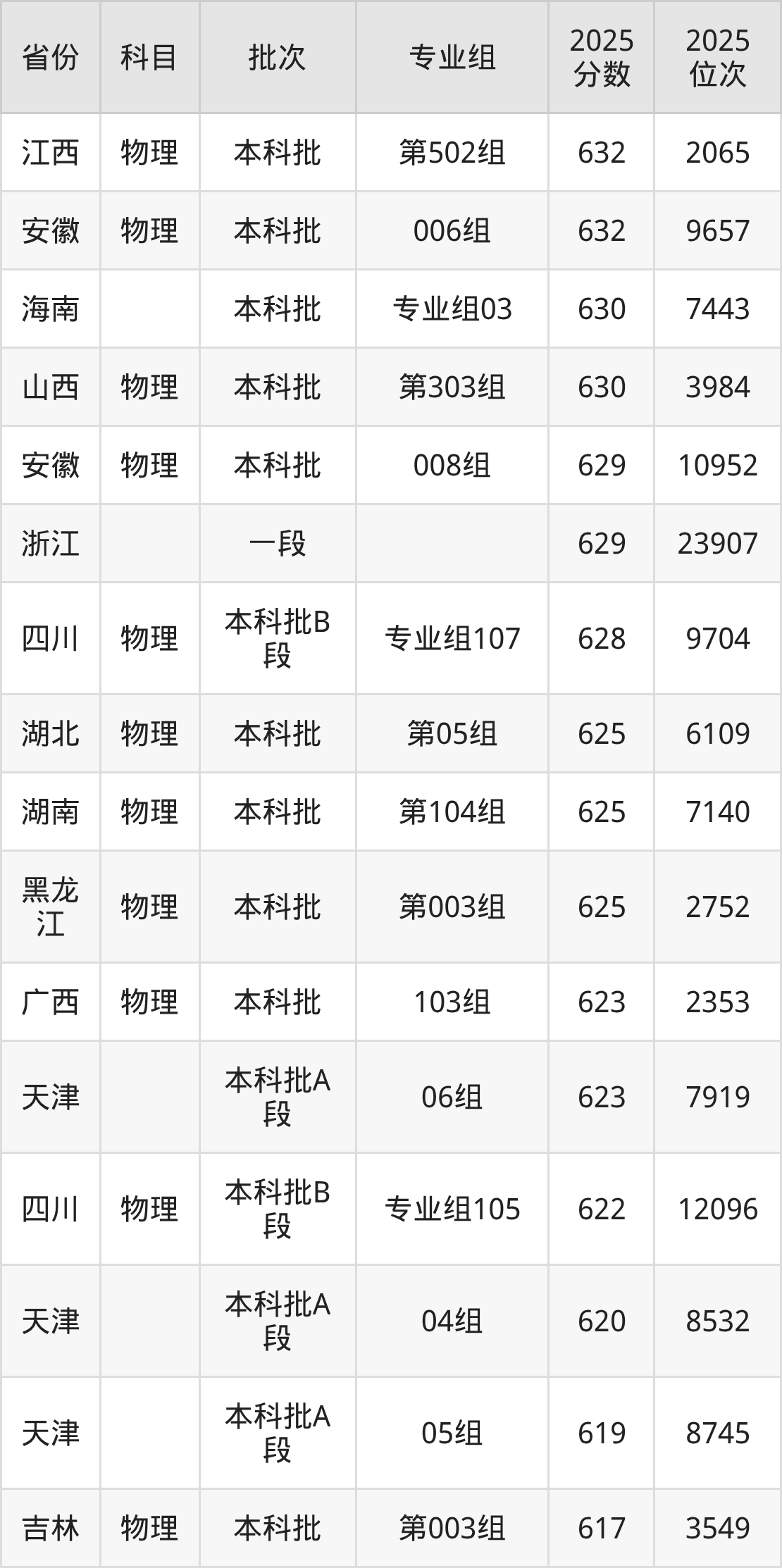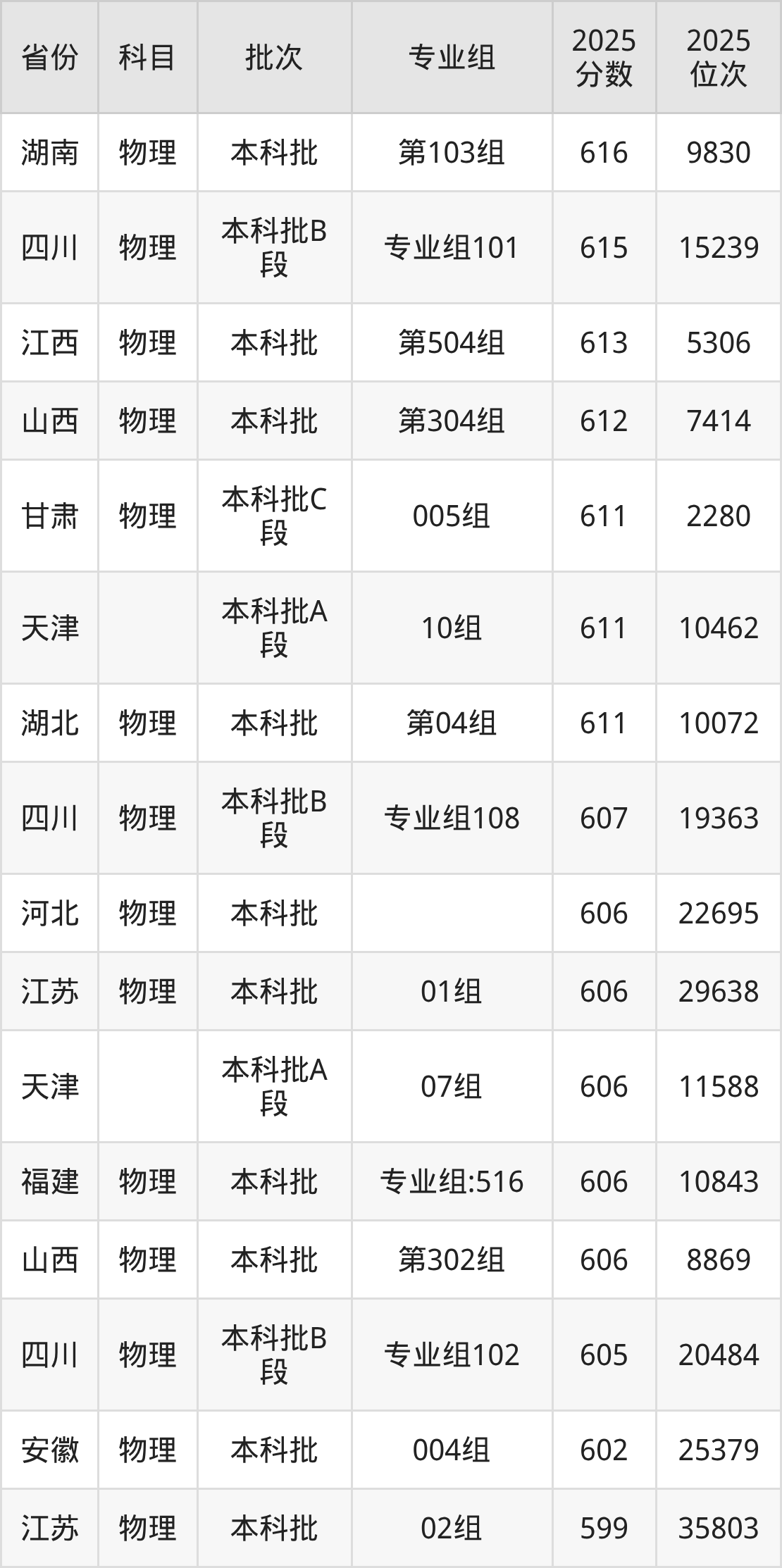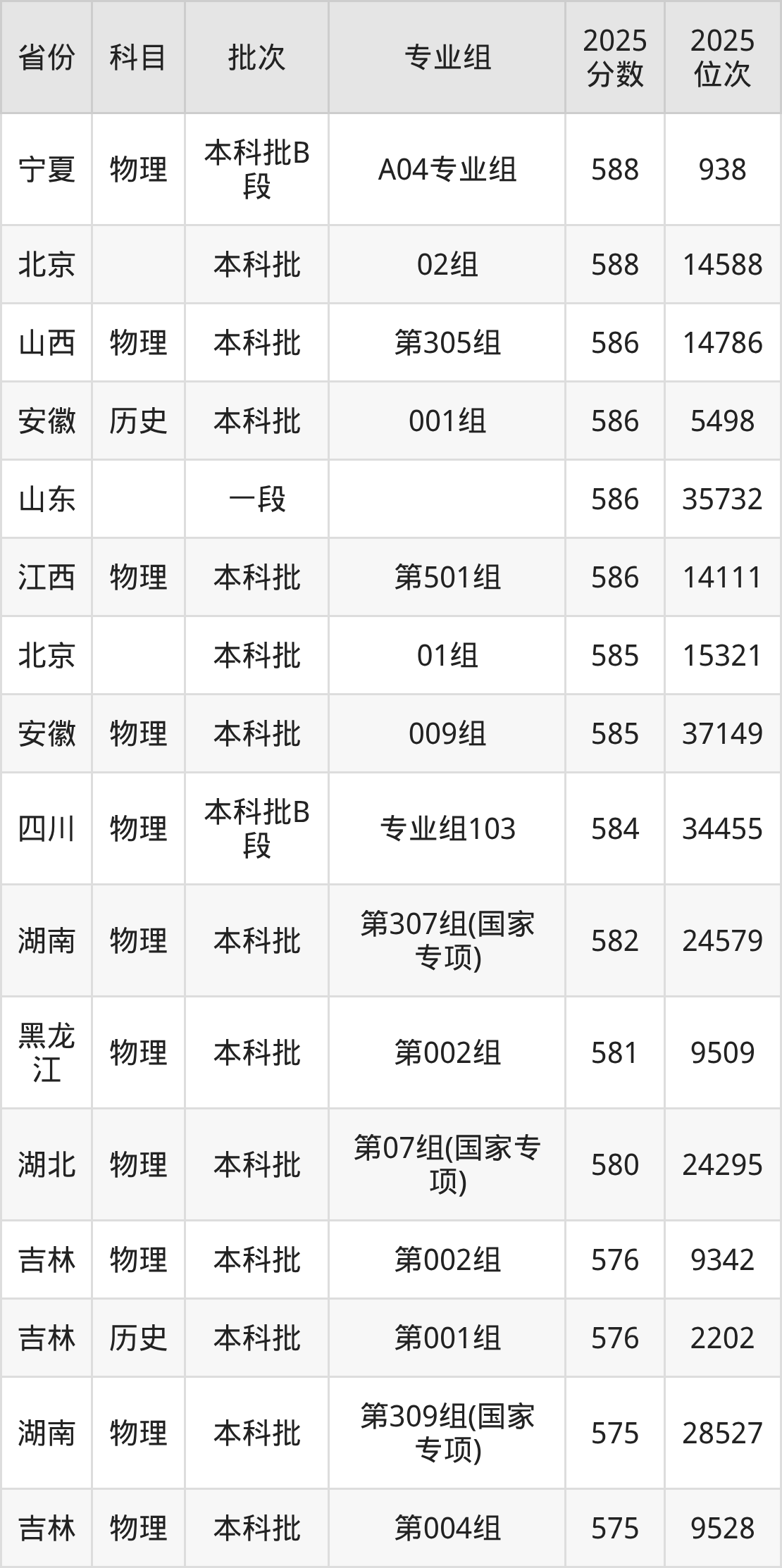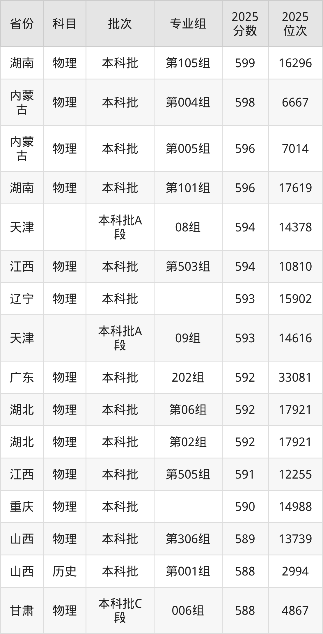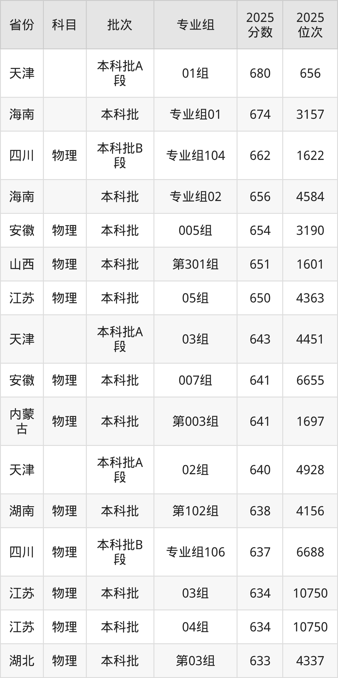下面是2025年天津医科大学在全国各省录取最低分数据及位次,各位考生也可作为一个参考。