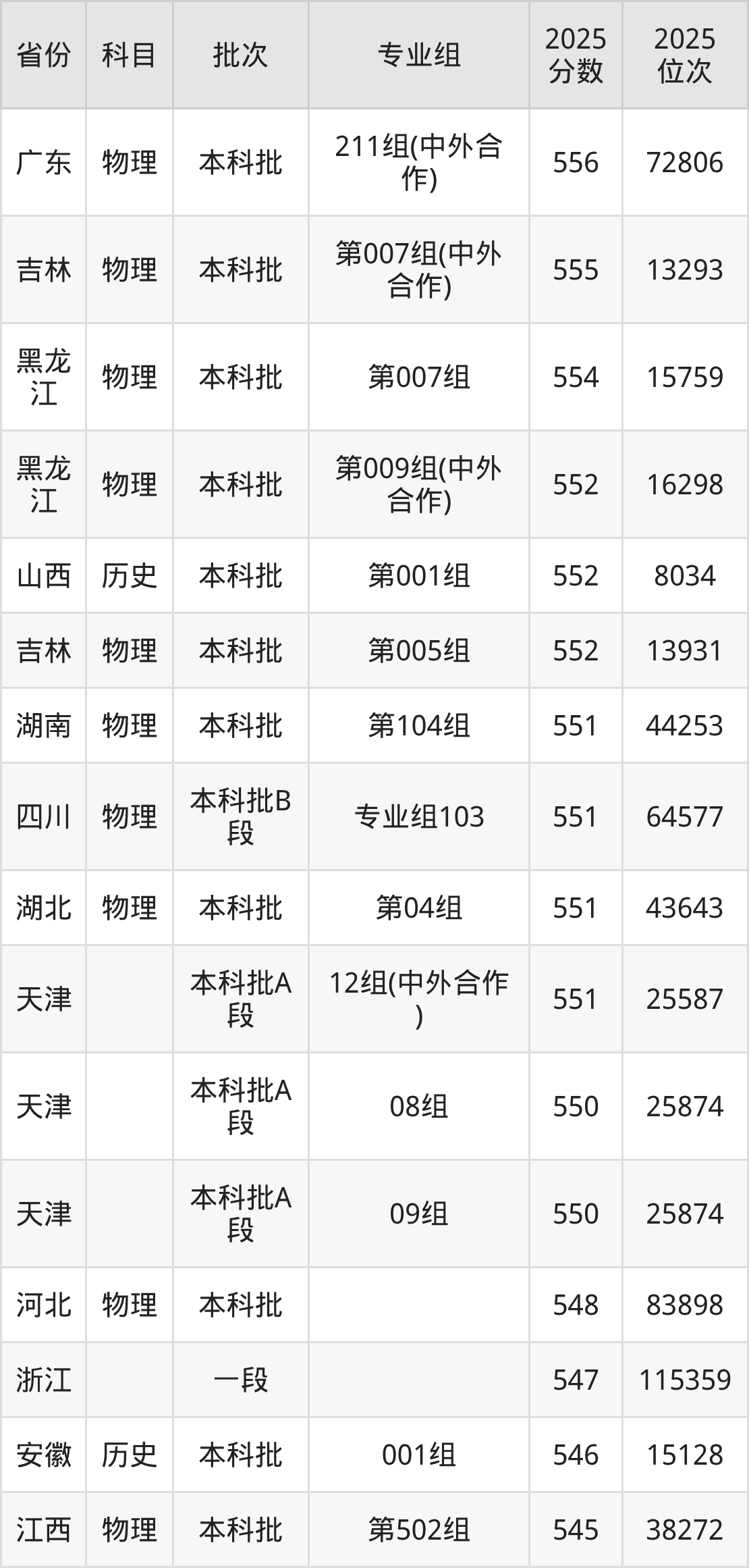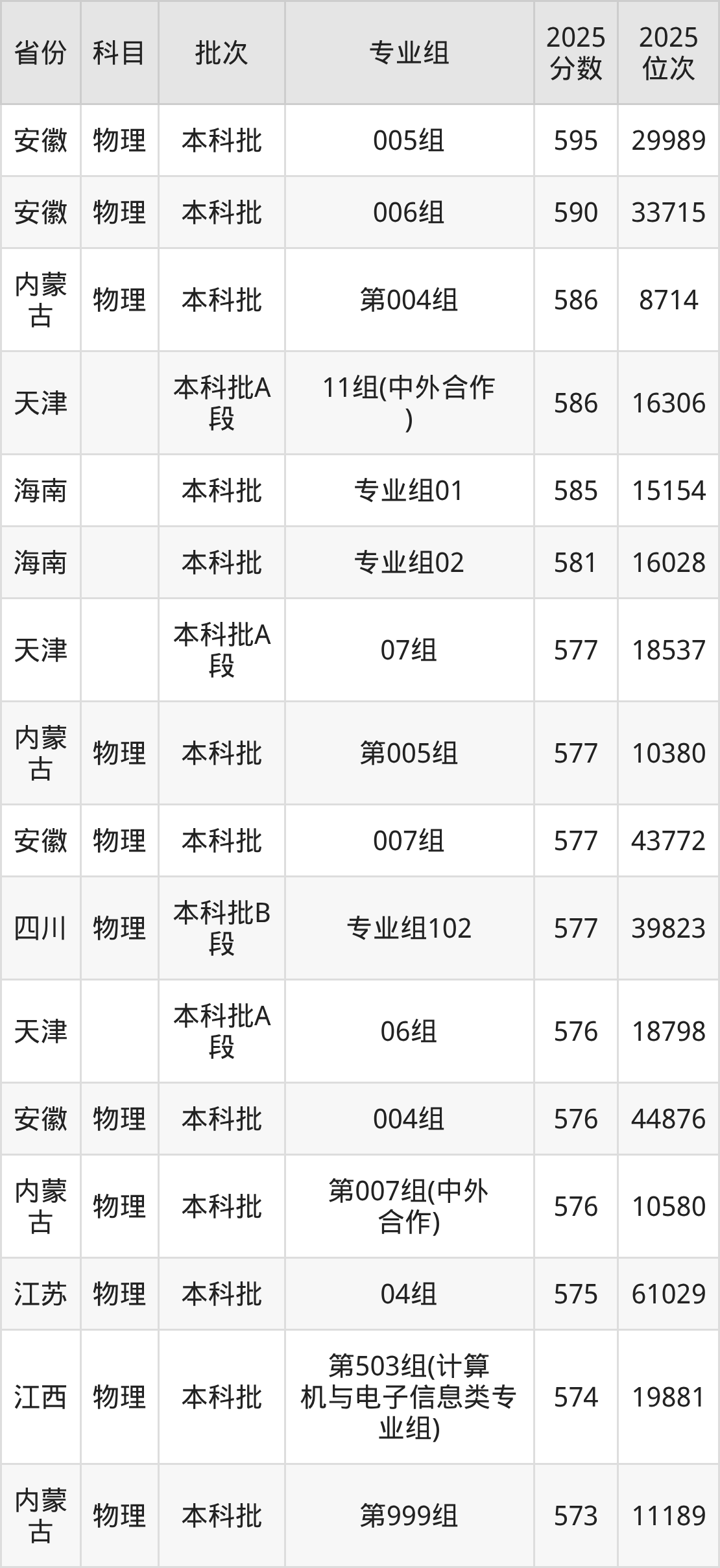 下面是2025年天津理工大学在全国各省录取最低分数据及位次,各位考生也可作为一个参考。