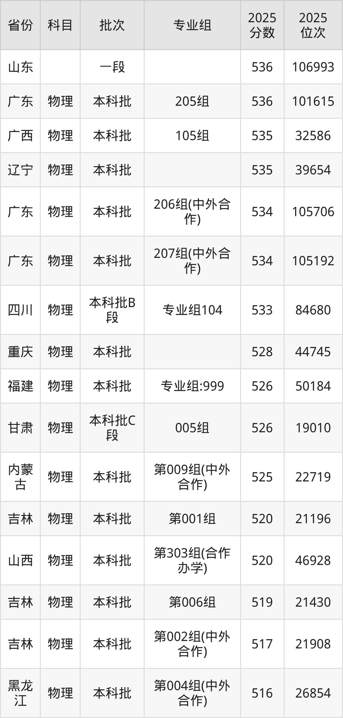 参考2025年山东省高考招录数据,按照分数线从高到低依次为大家展示天津理工大学各个专业录取分数线。
