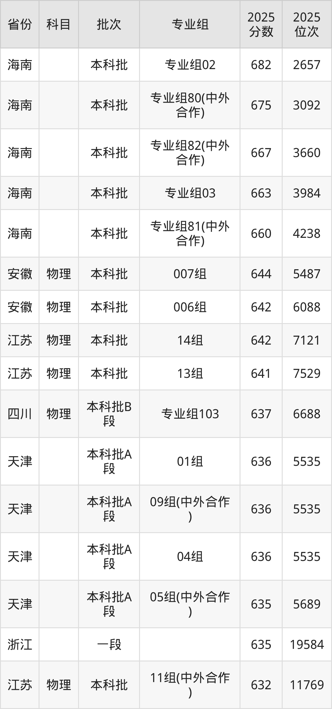 下面是2025年中国海洋大学在全国各省录取最低分数据及位次,各位考生也可作为一个参考。