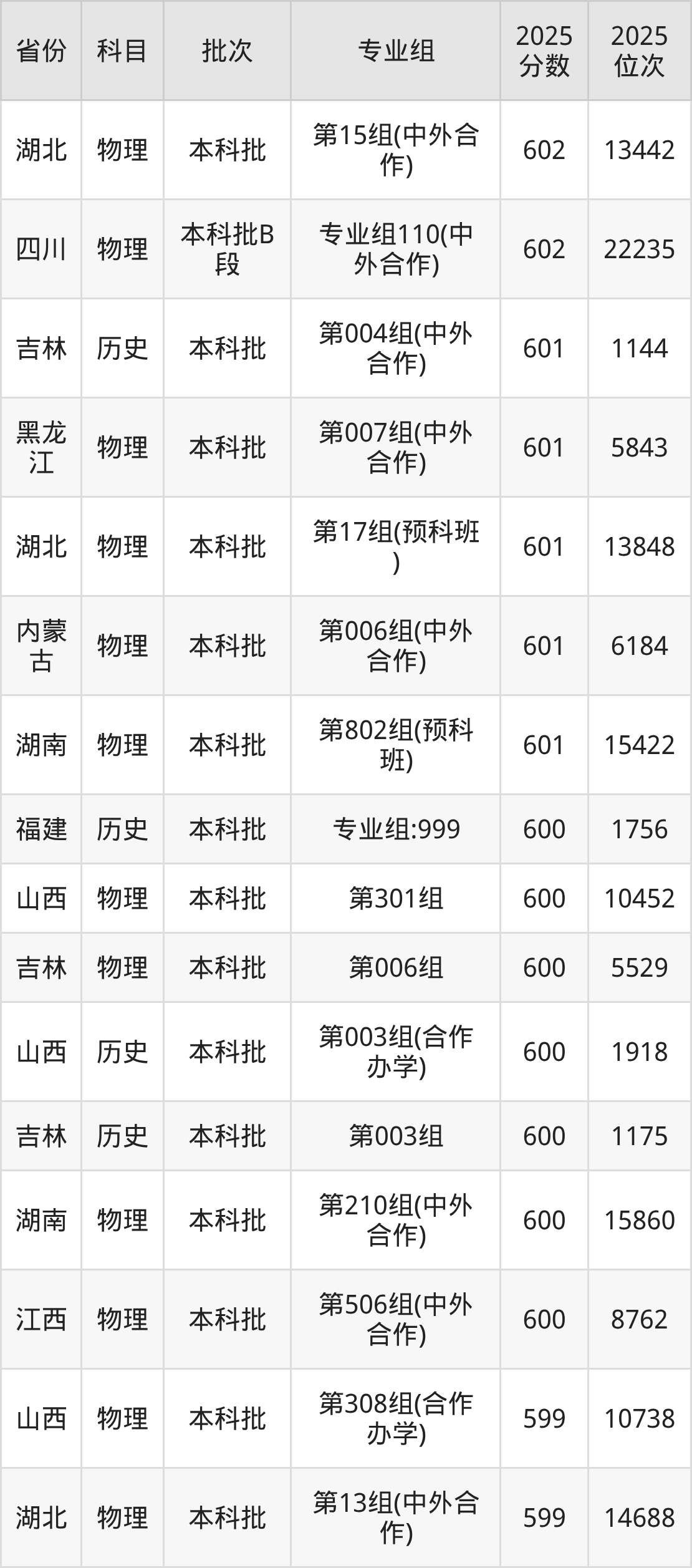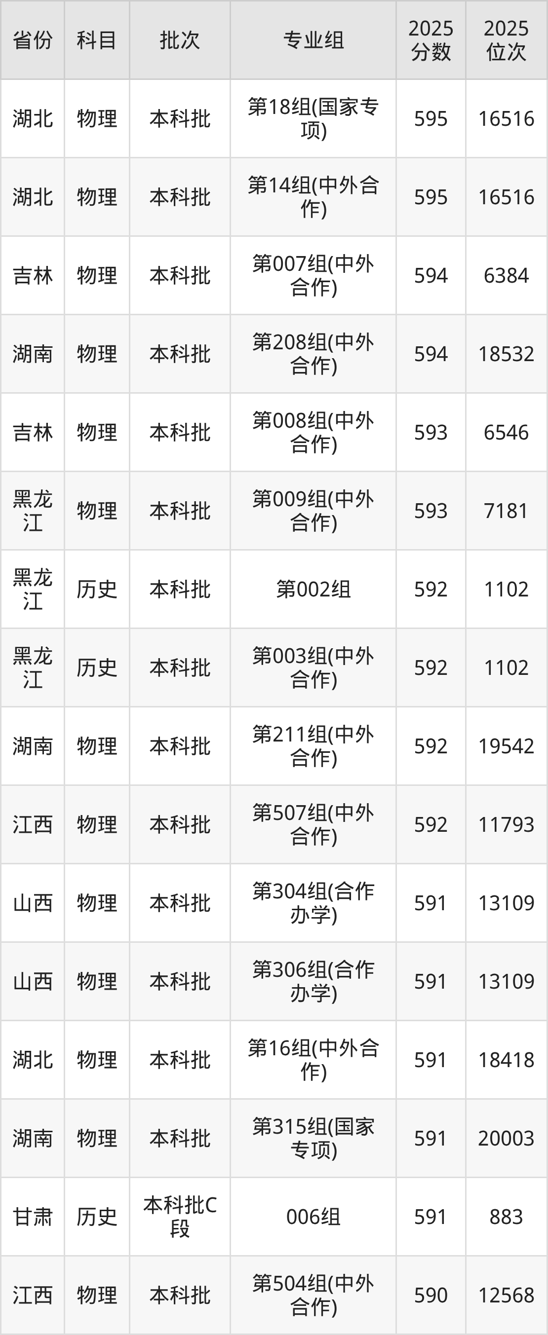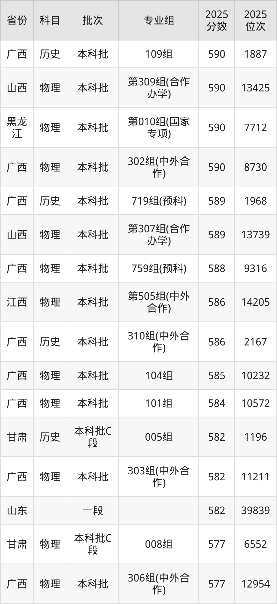 57、物理学(中外合作办学)(与英国赫瑞瓦特大学合办)(“3+1”模式):582分、位次39839名。