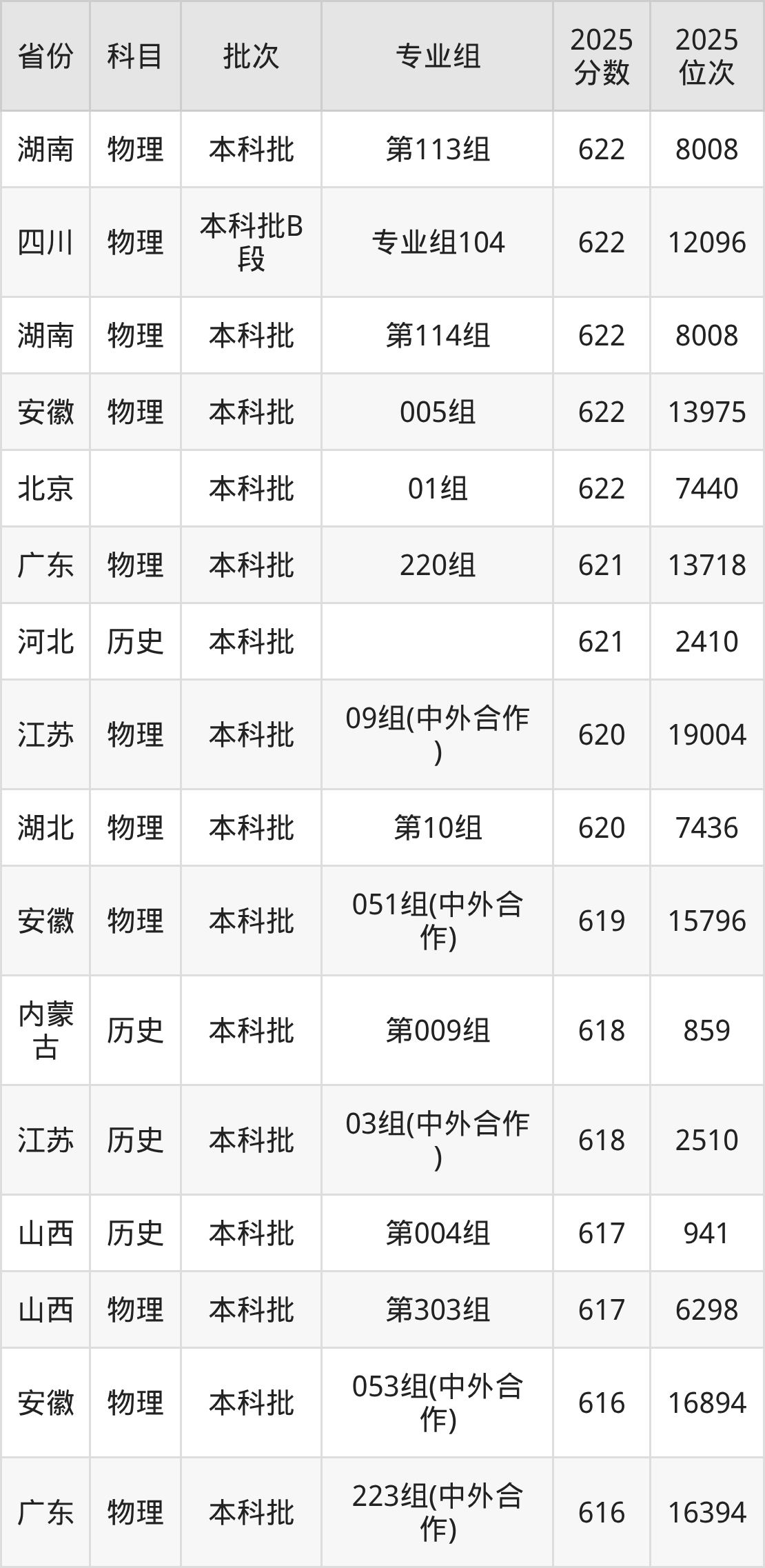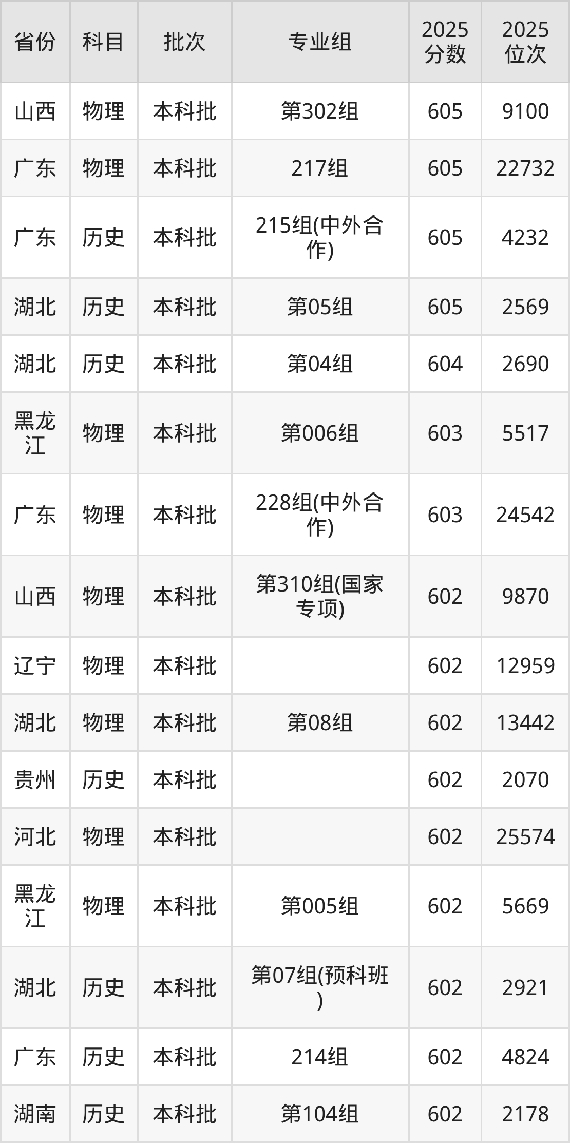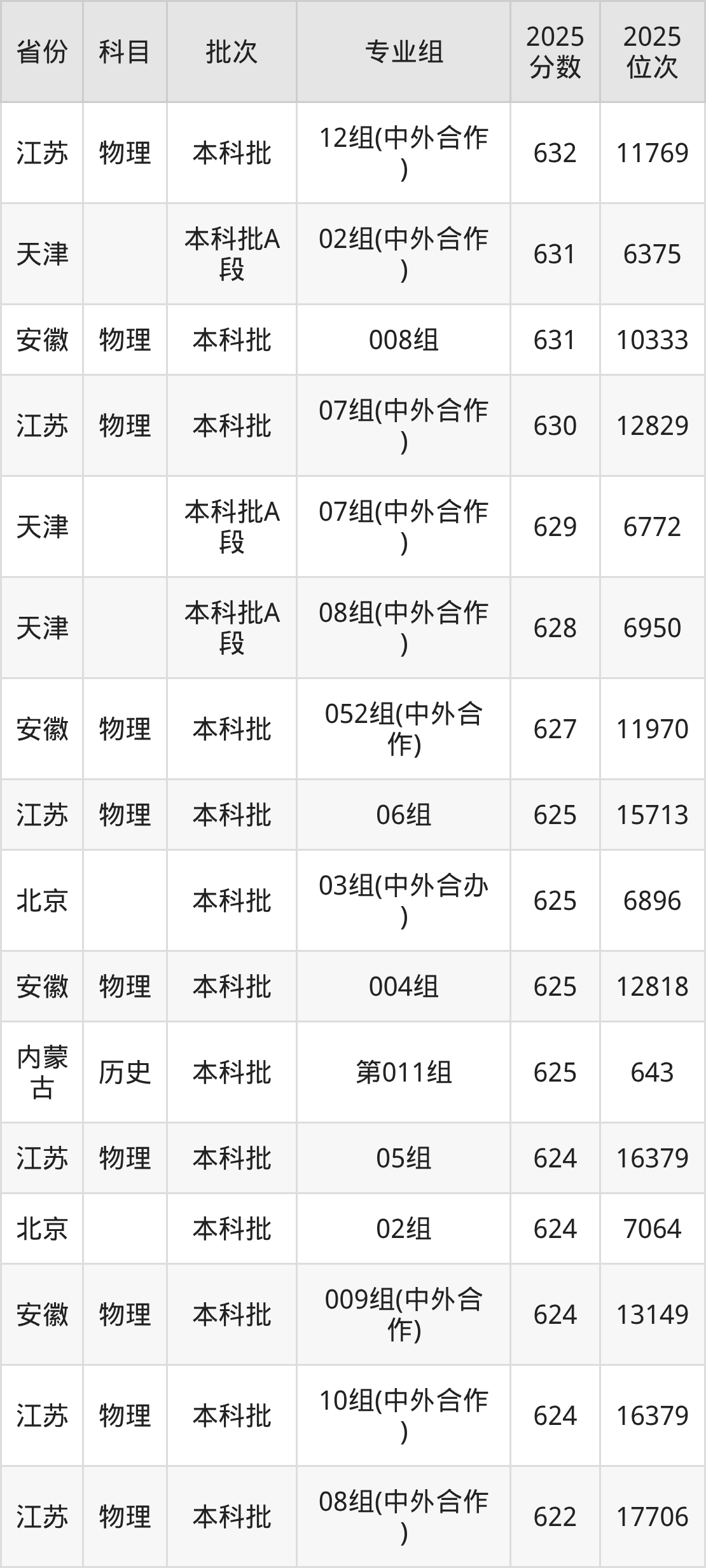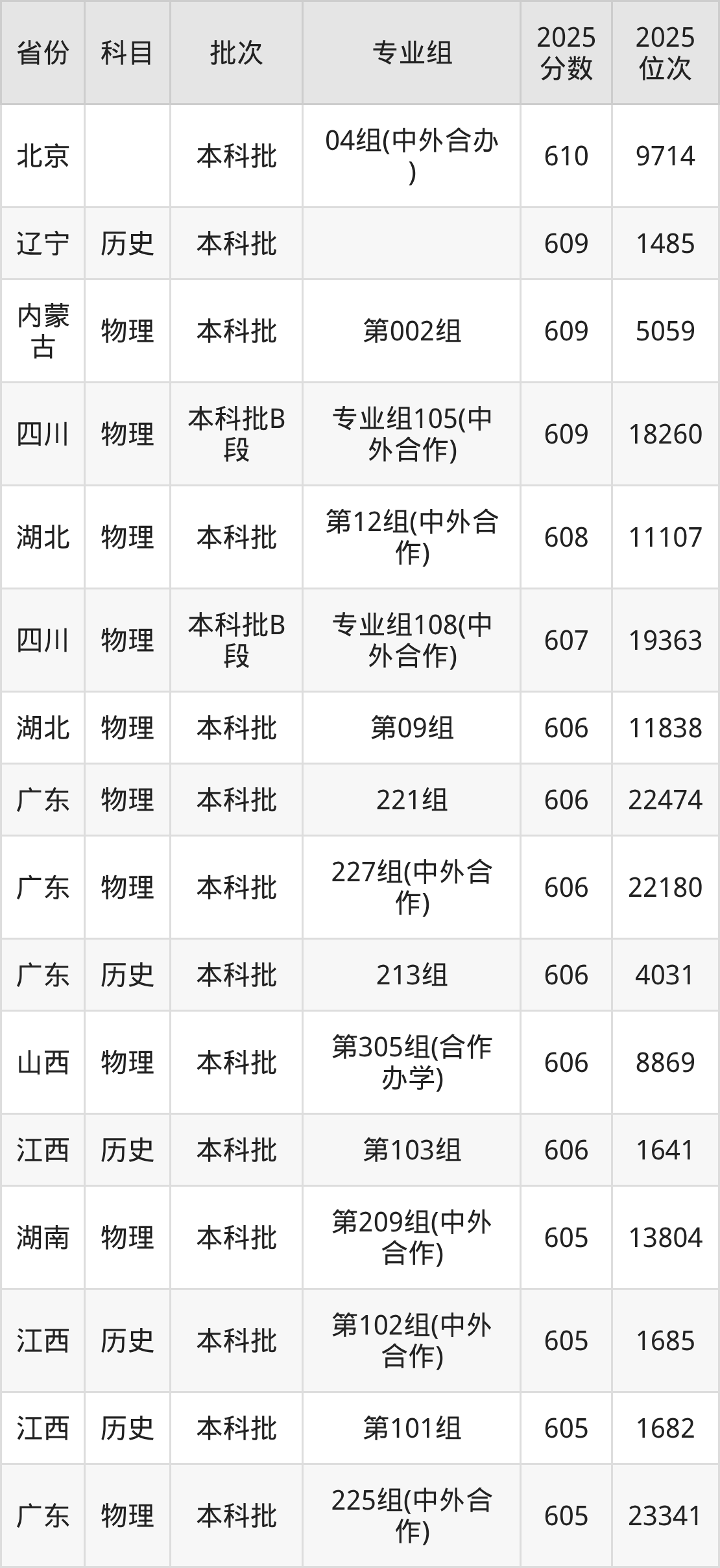 57、物理学(中外合作办学)(与英国赫瑞瓦特大学合办)(“3+1”模式):582分、位次39839名。