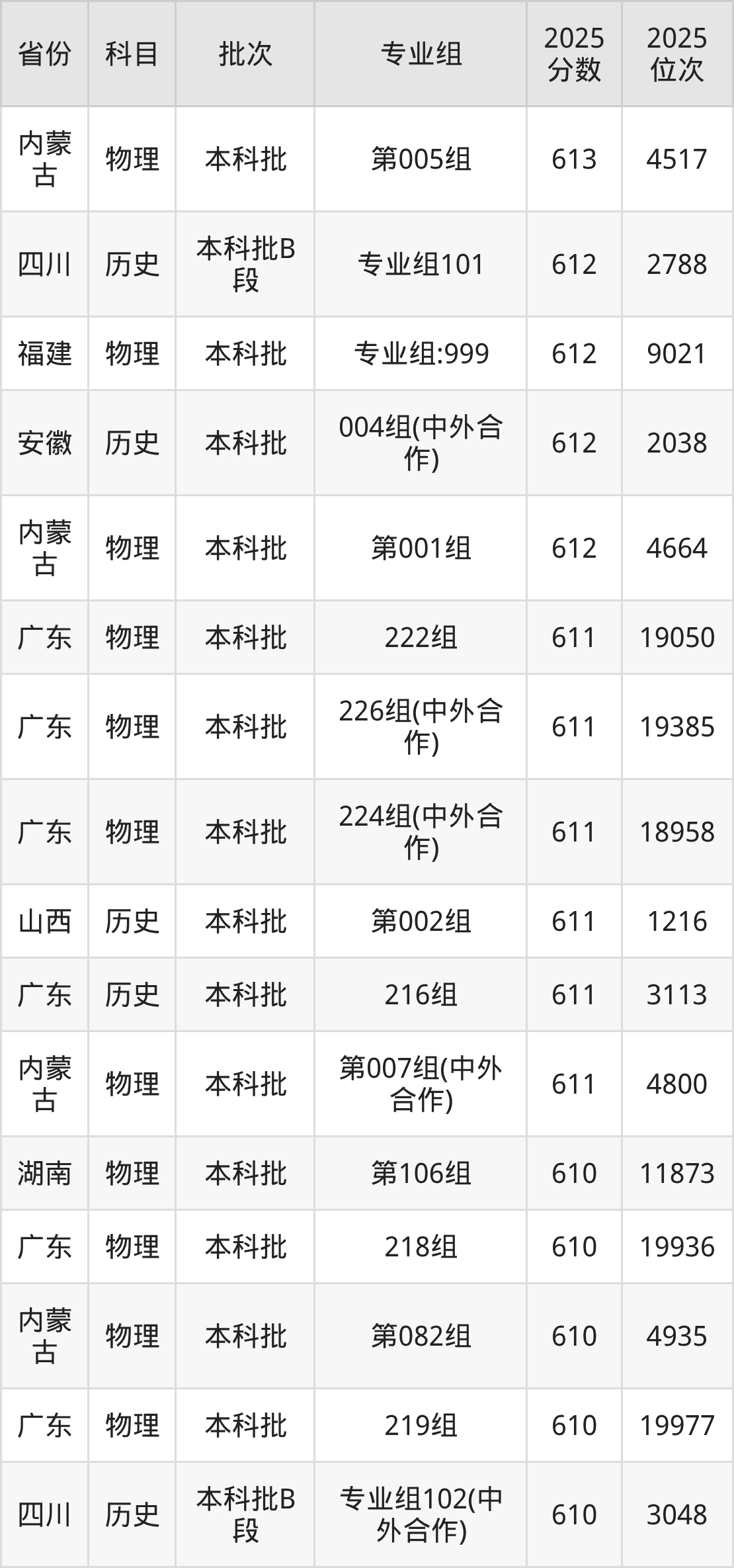 25、材料类:612分、位次17211名;