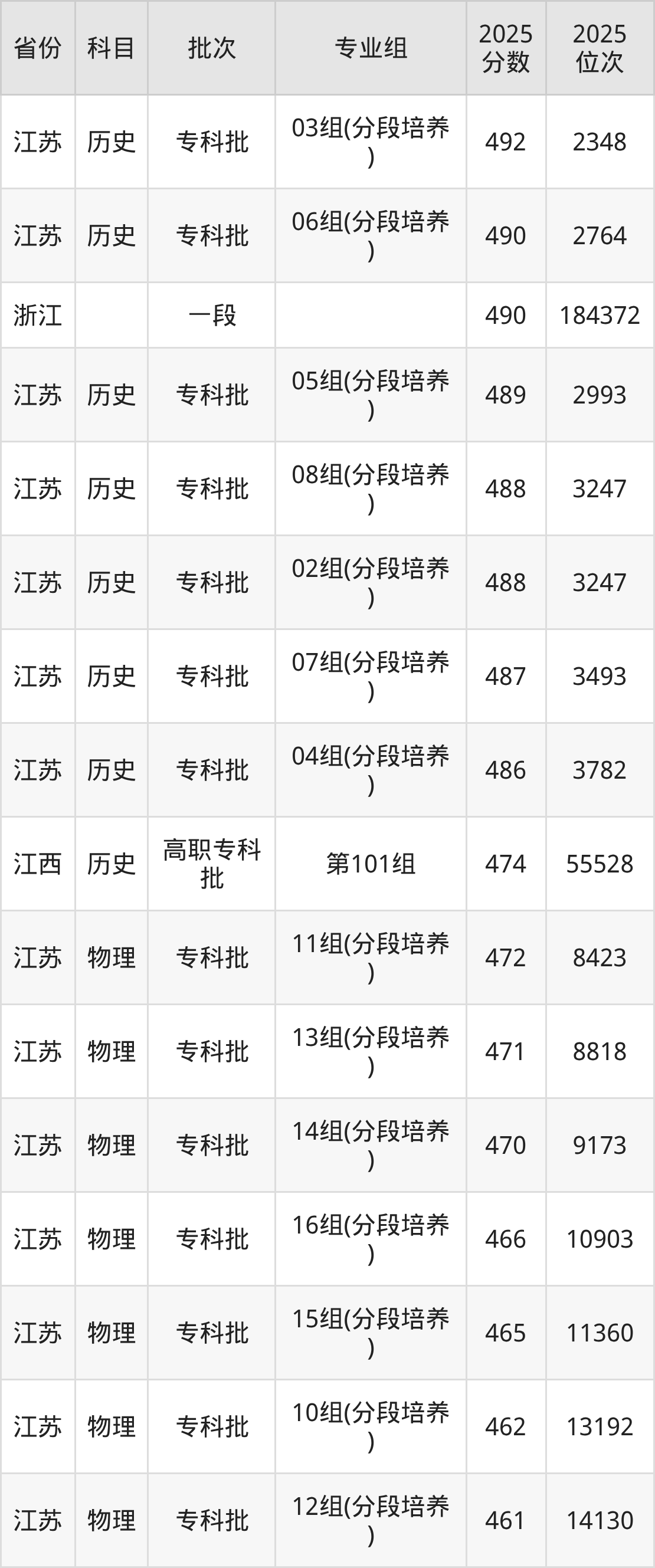 2025年江苏航运职业技术学院全国录取分数线220分到492分,录取最高在江苏(03组(分段培养))、录取最低在江苏(09组)。