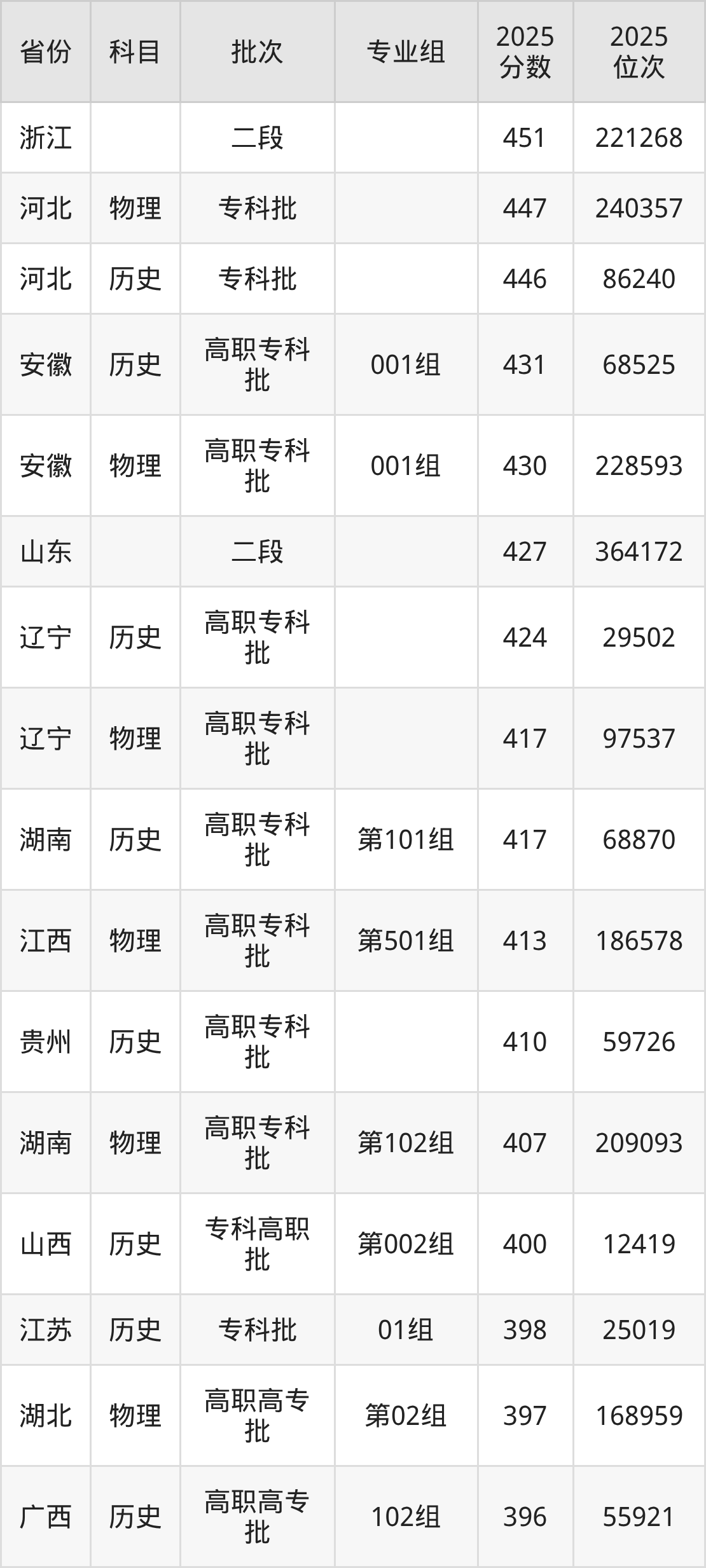 下面是2025年江苏航运职业技术学院在全国各省录取最低分数据及位次,各位考生也可作为一个参考。