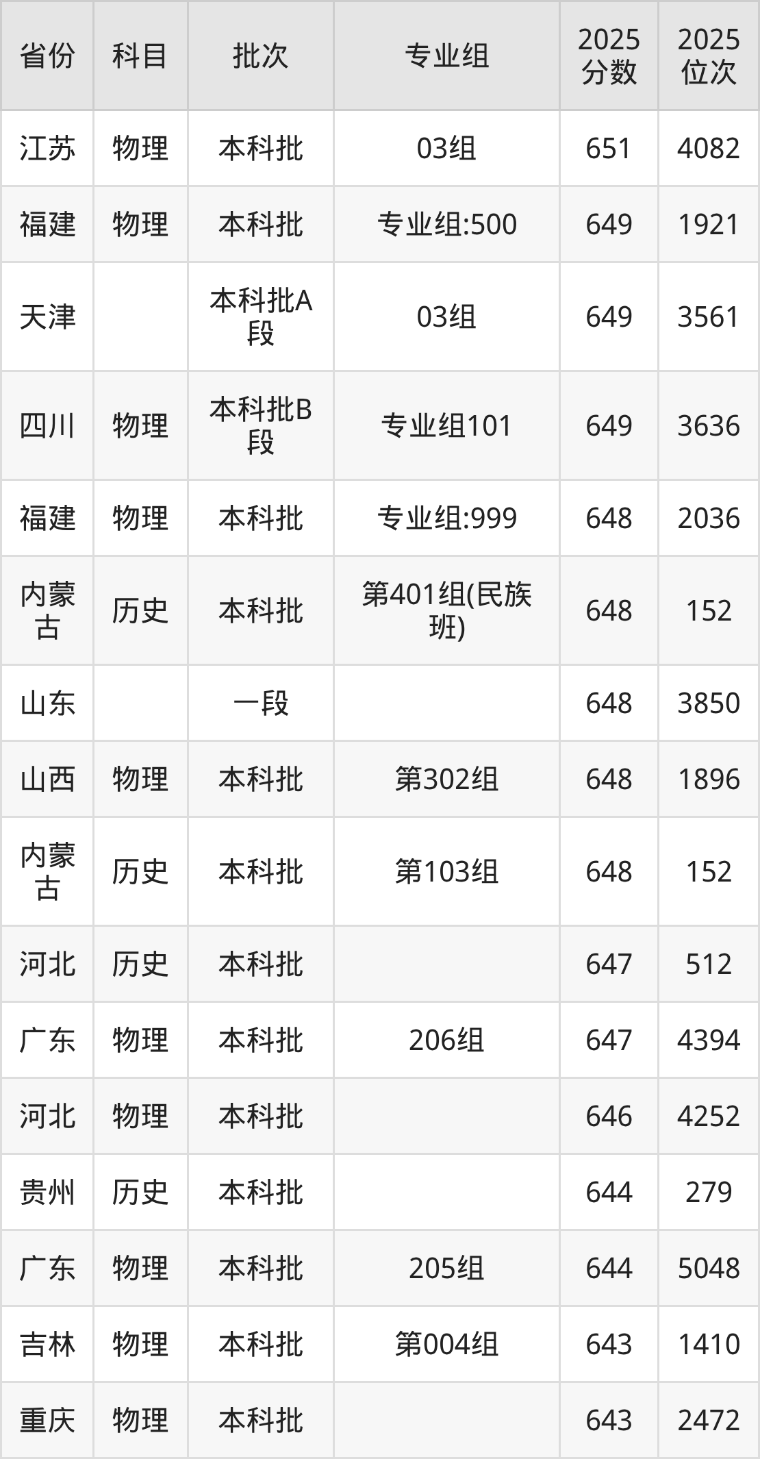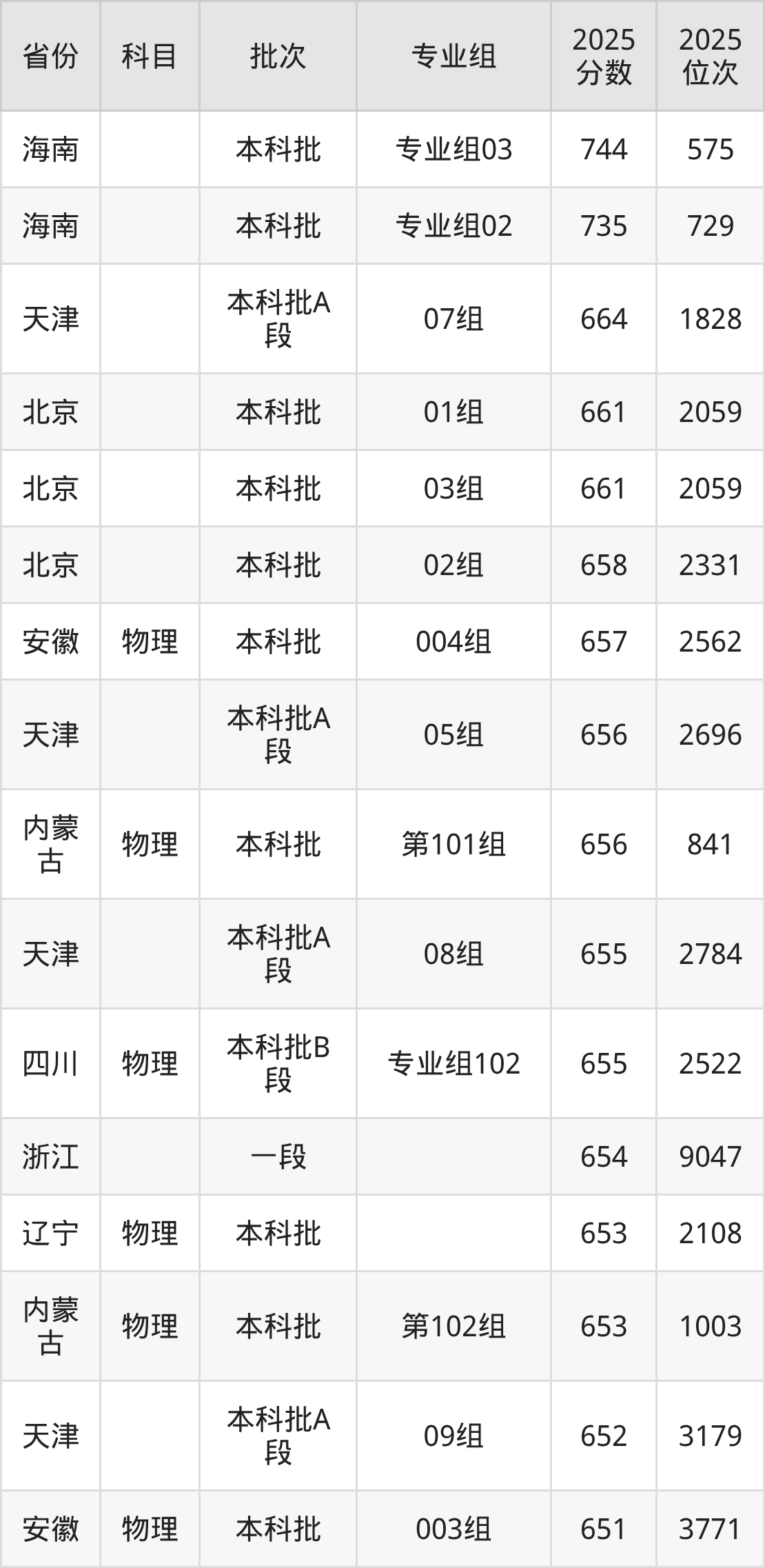 参考2025年山东省高考招录数据,按照分数线从高到低依次为大家展示南开大学各个专业录取分数线。