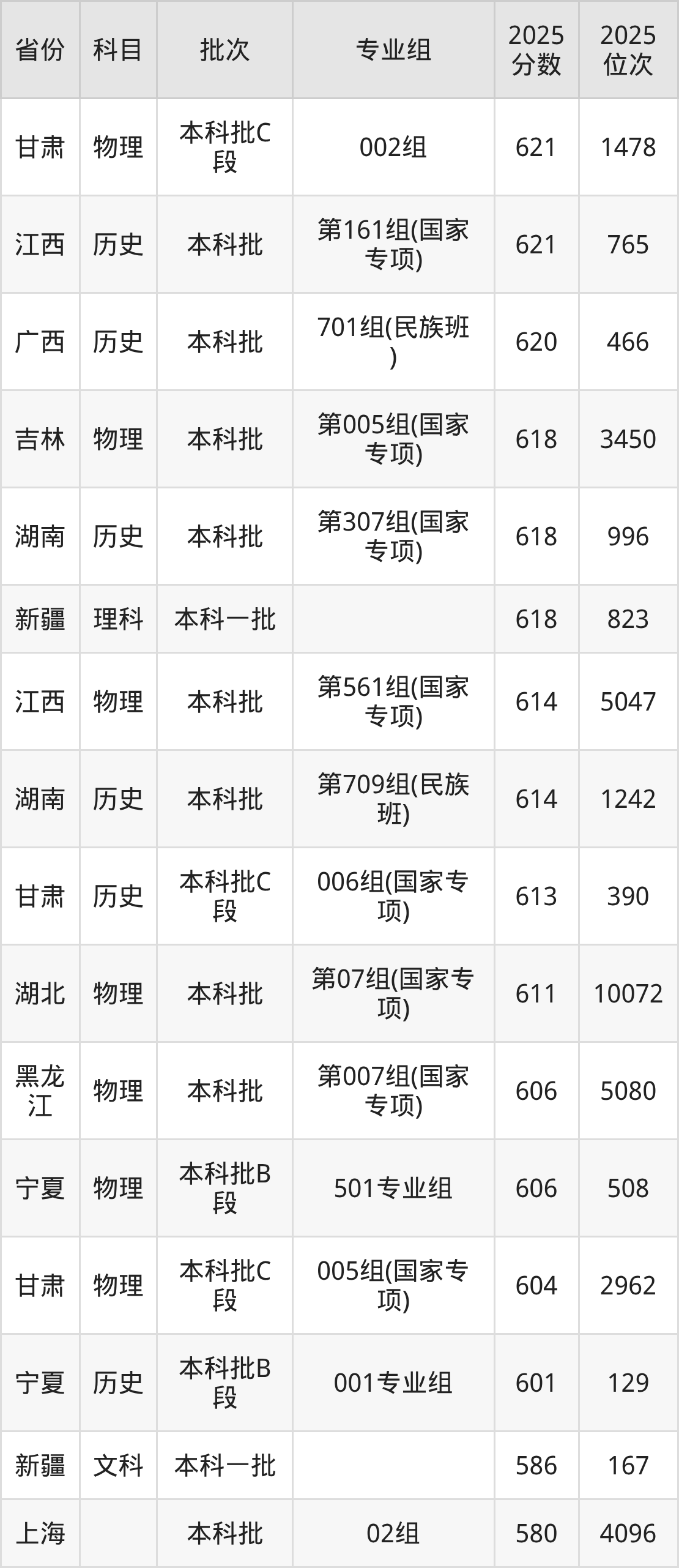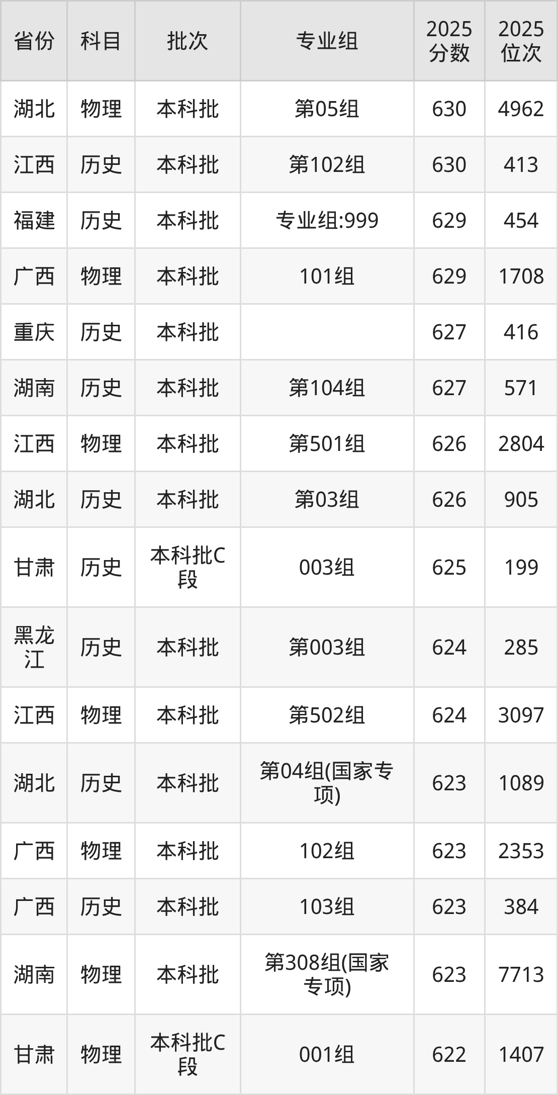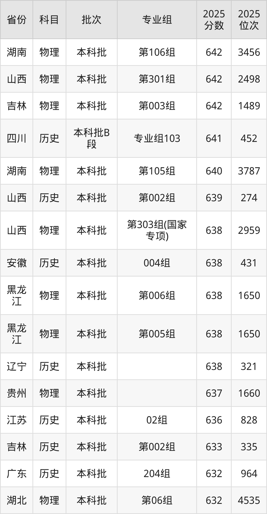 5、理科试验班(数学与大数据)(包含专业:数学与应用数学、信息与计算科学、数据科学、统计学):657分、位次2311名;
