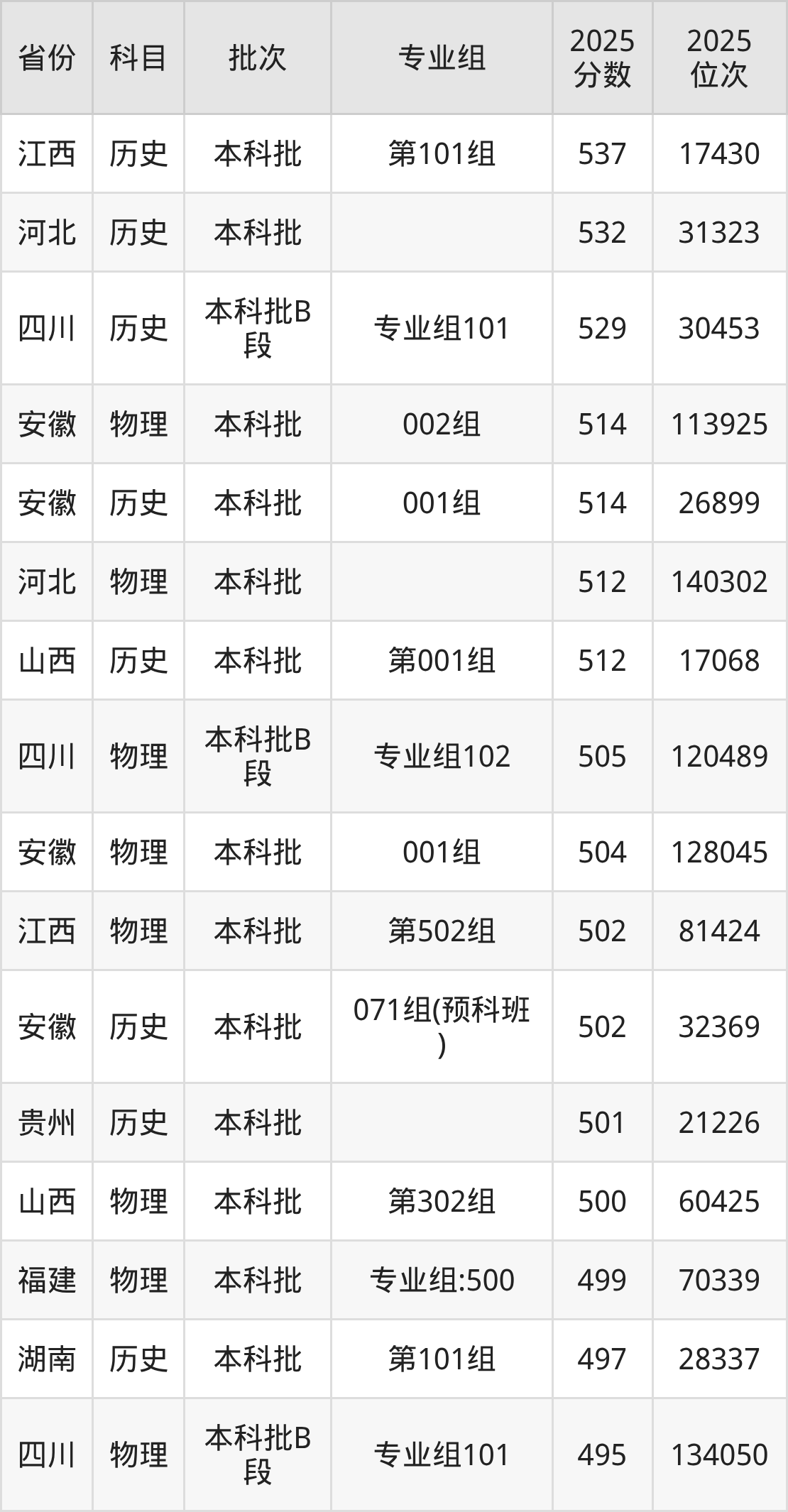 2025年福建商学院全国录取分数线305分到537分,录取最高在江西(第101组)、录取最低在吉林(第001组)。