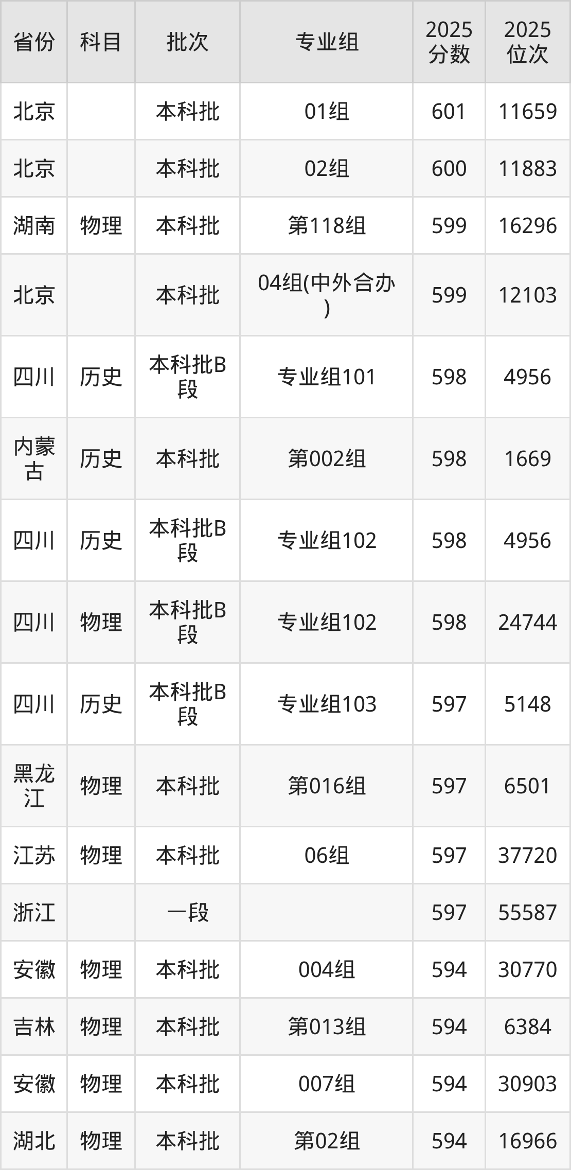 下面是2025年辽宁大学在全国各省录取最低分数据及位次,各位考生也可作为一个参考。