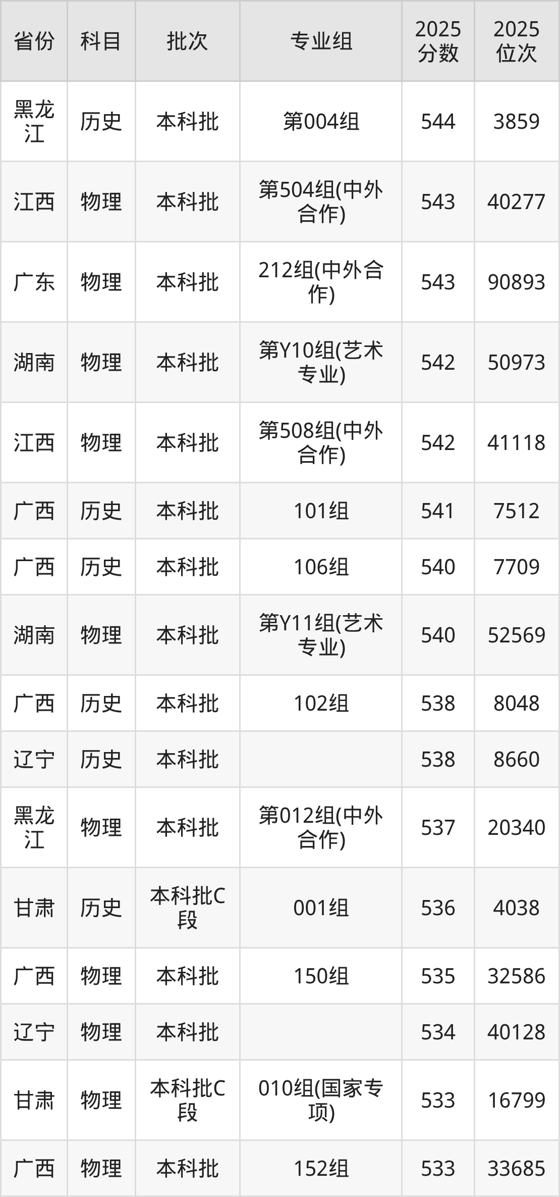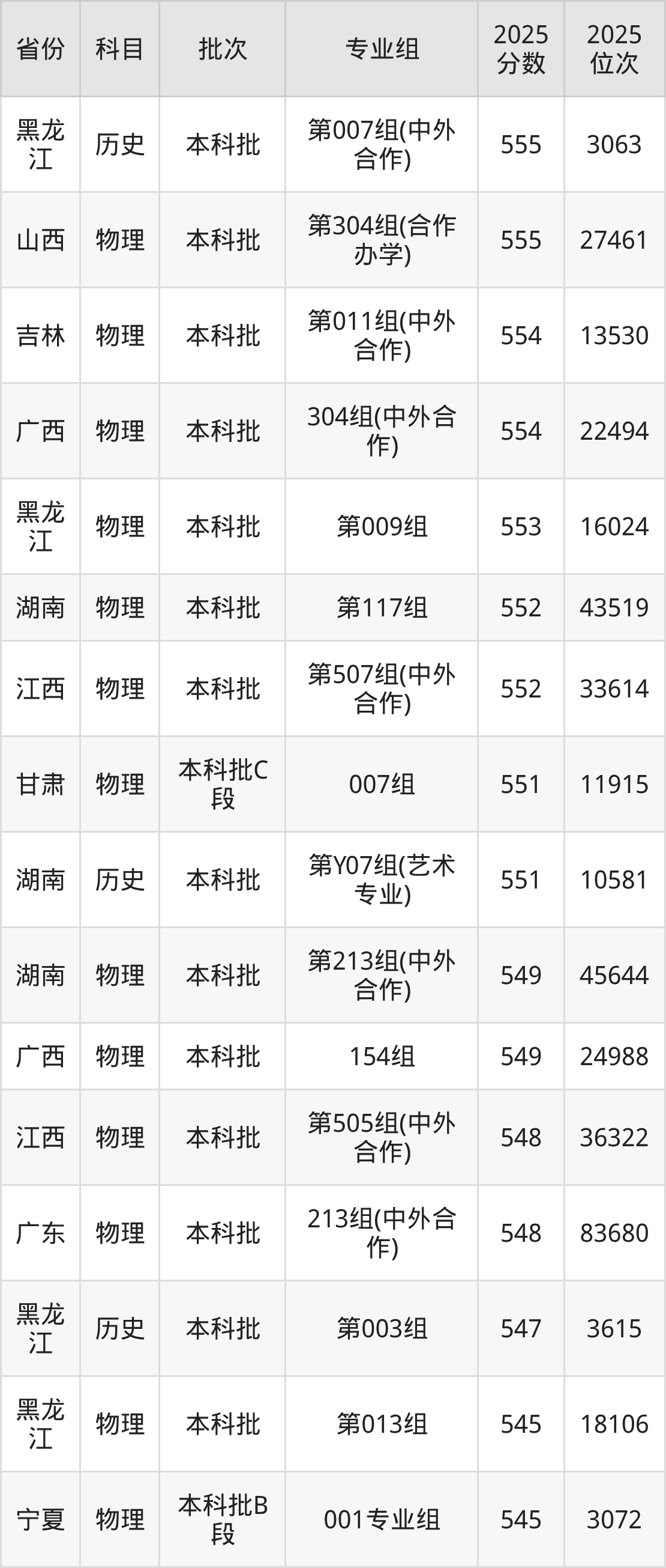 参考2025年山东省高考招录数据,按照分数线从高到低依次为大家展示辽宁大学各个专业录取分数线。