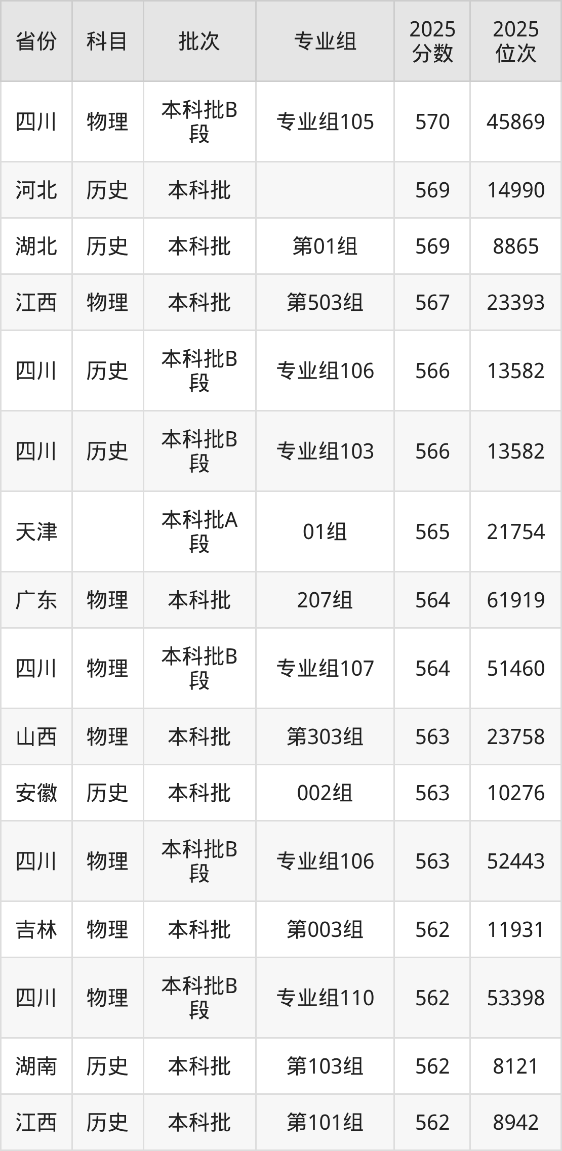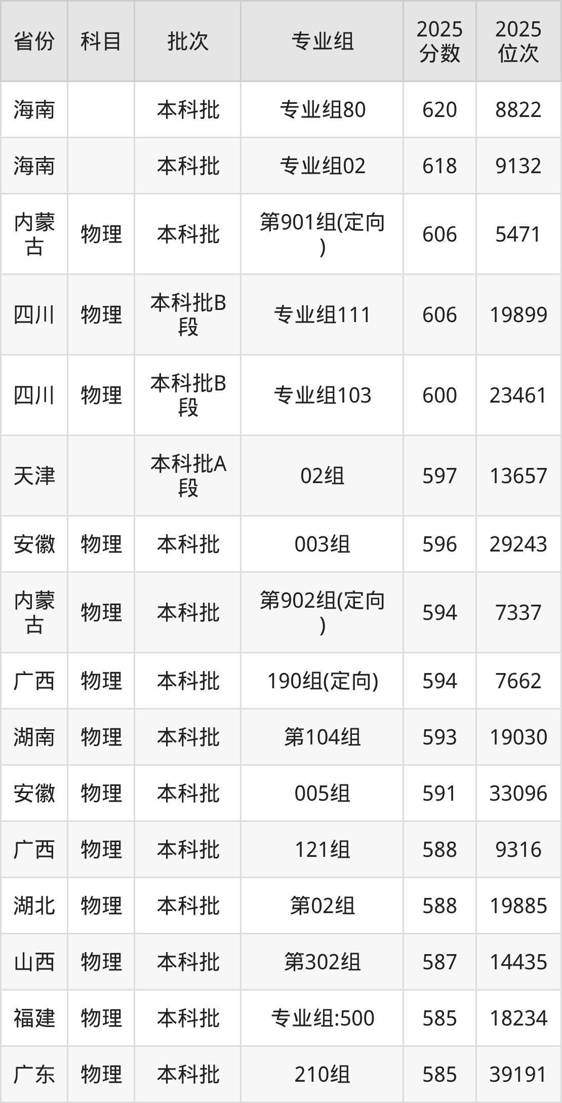 下面是2025年成都信息工程大学在全国各省录取最低分数据及位次,各位考生也可作为一个参考。