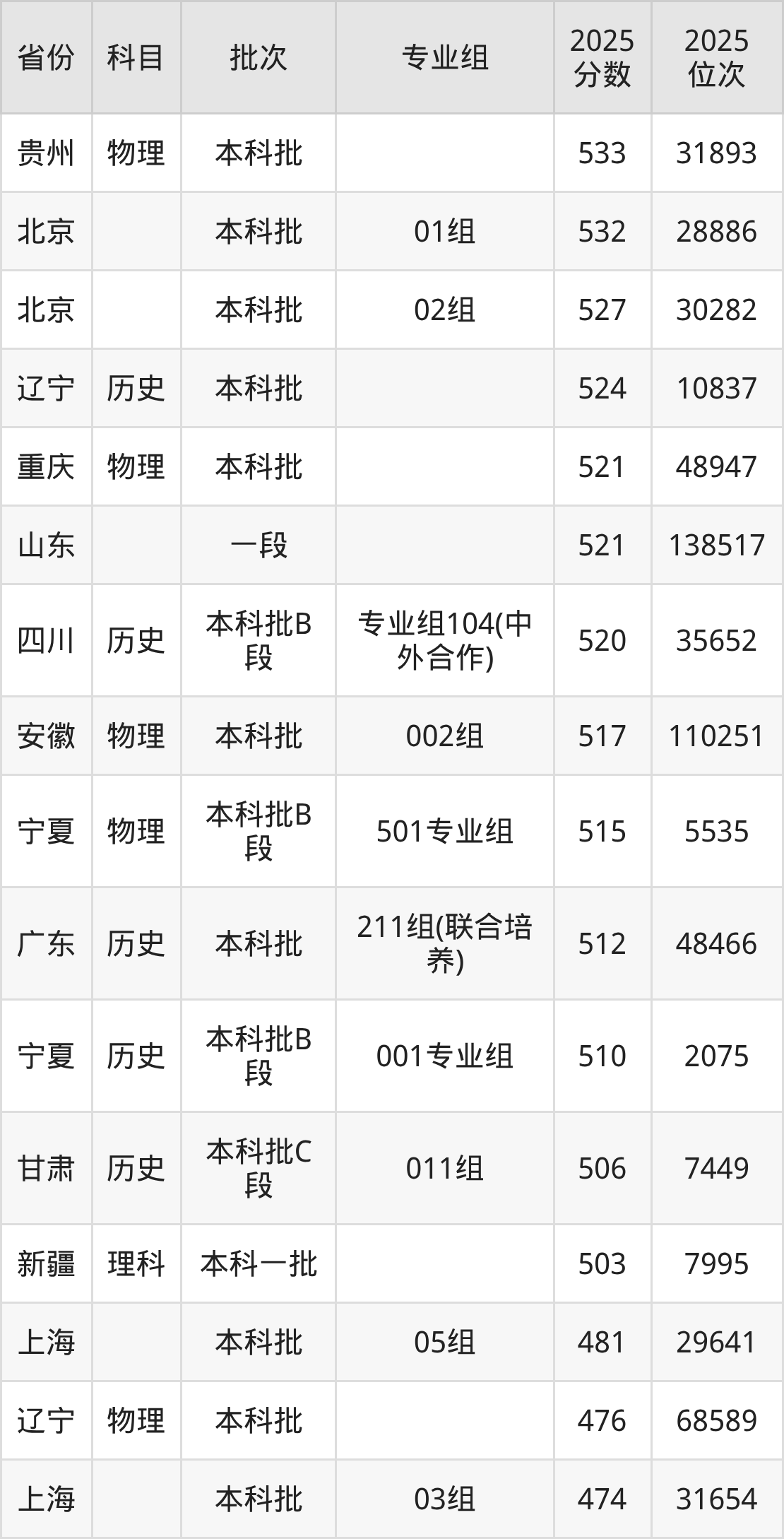 参考2025年山东省高考招录数据,按照分数线从高到低依次为大家展示成都信息工程大学各个专业录取分数线。