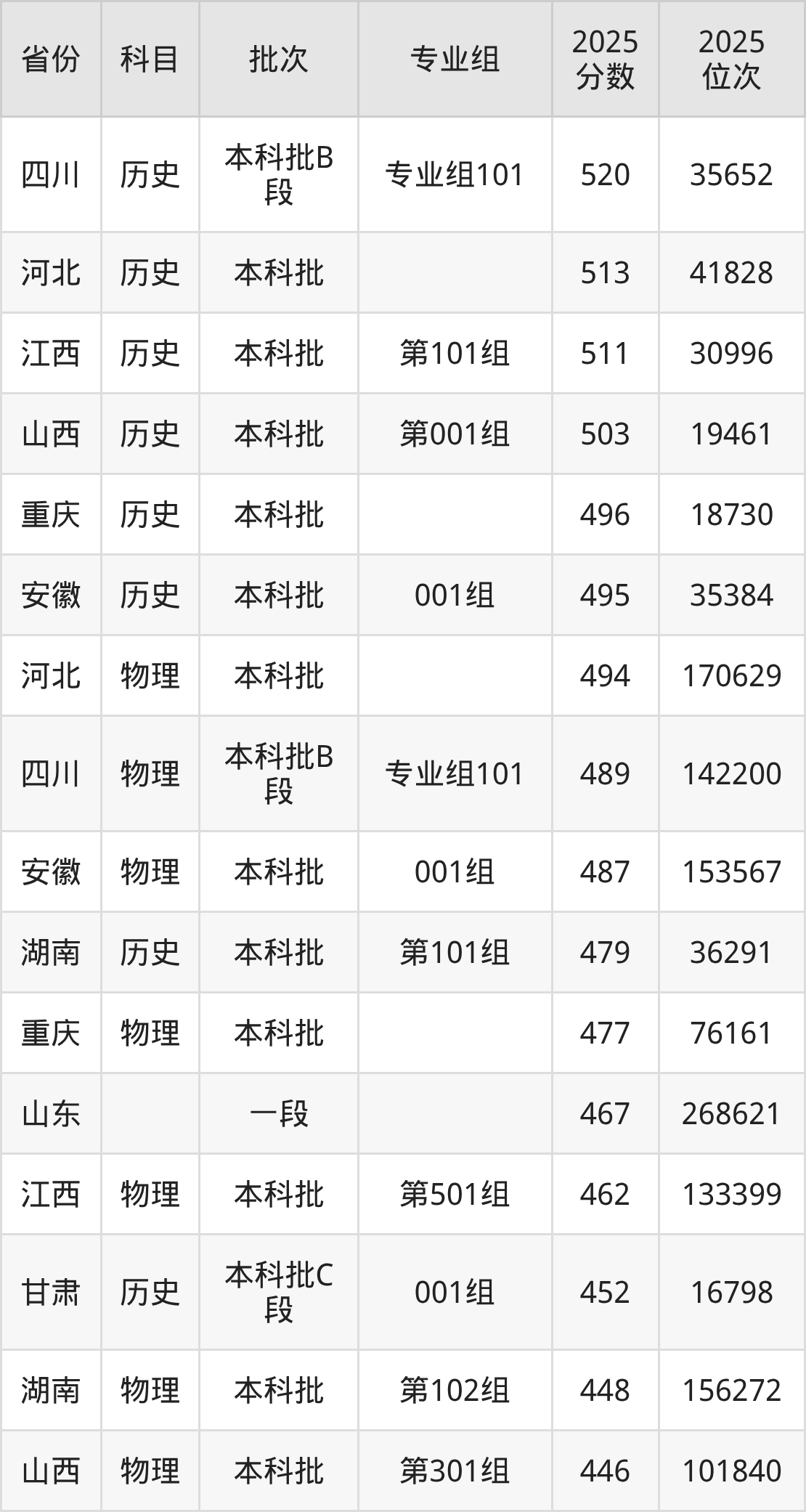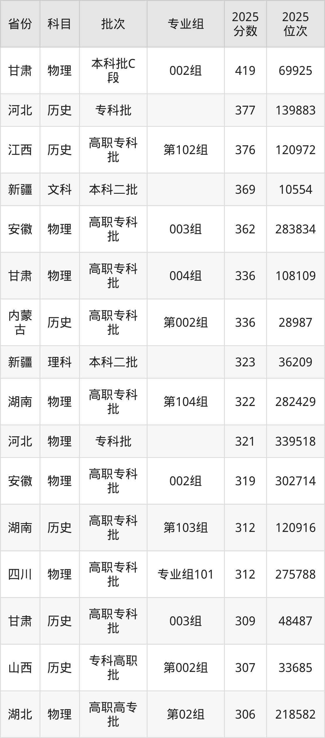 下面是2025年新疆农业职业技术大学在全国各省录取最低分数据及位次,各位考生也可作为一个参考。