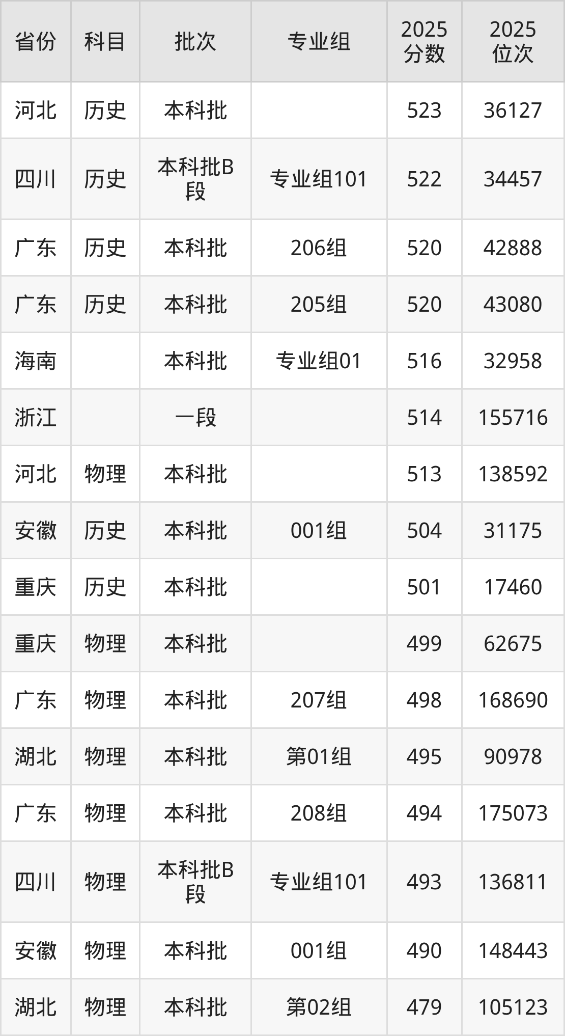 下面是2025年信阳农林学院在全国各省录取最低分数据及位次,各位考生也可作为一个参考。