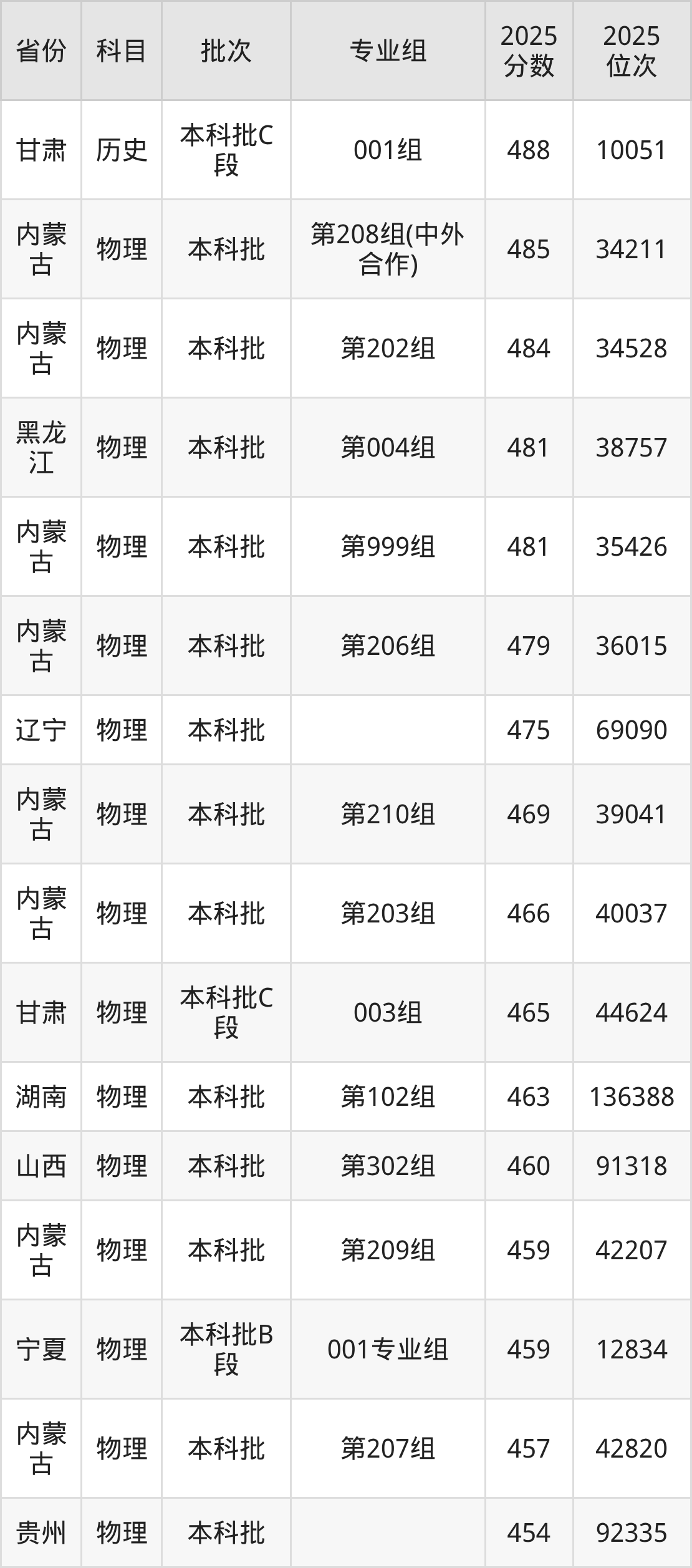 三、内蒙古财经大学2025年录取分数线