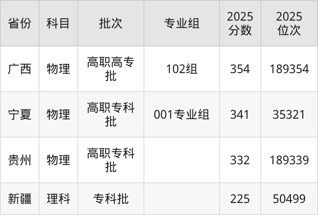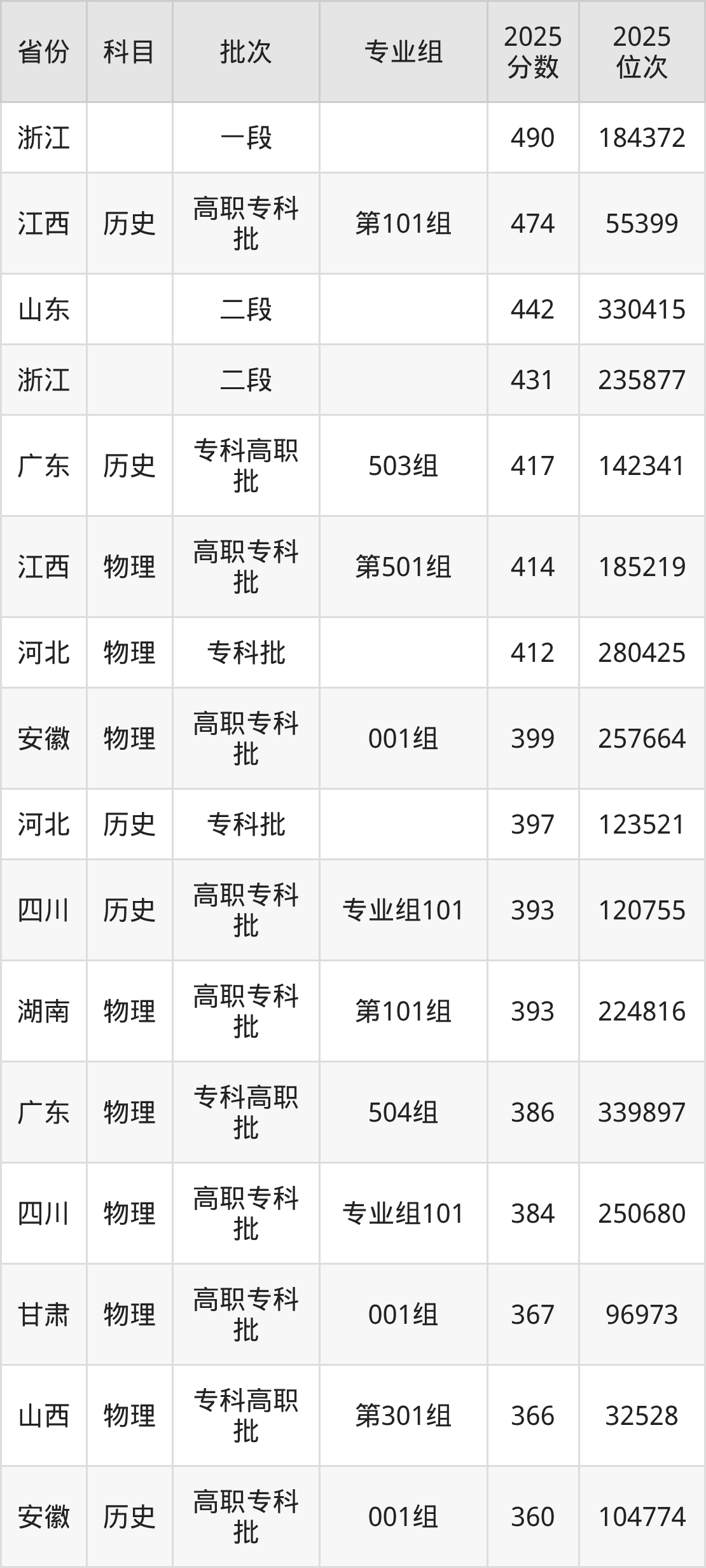 2025年福建水利电力职业技术学院全国录取分数线225分到490分,录取最高在浙江、录取最低在新疆(理科)。