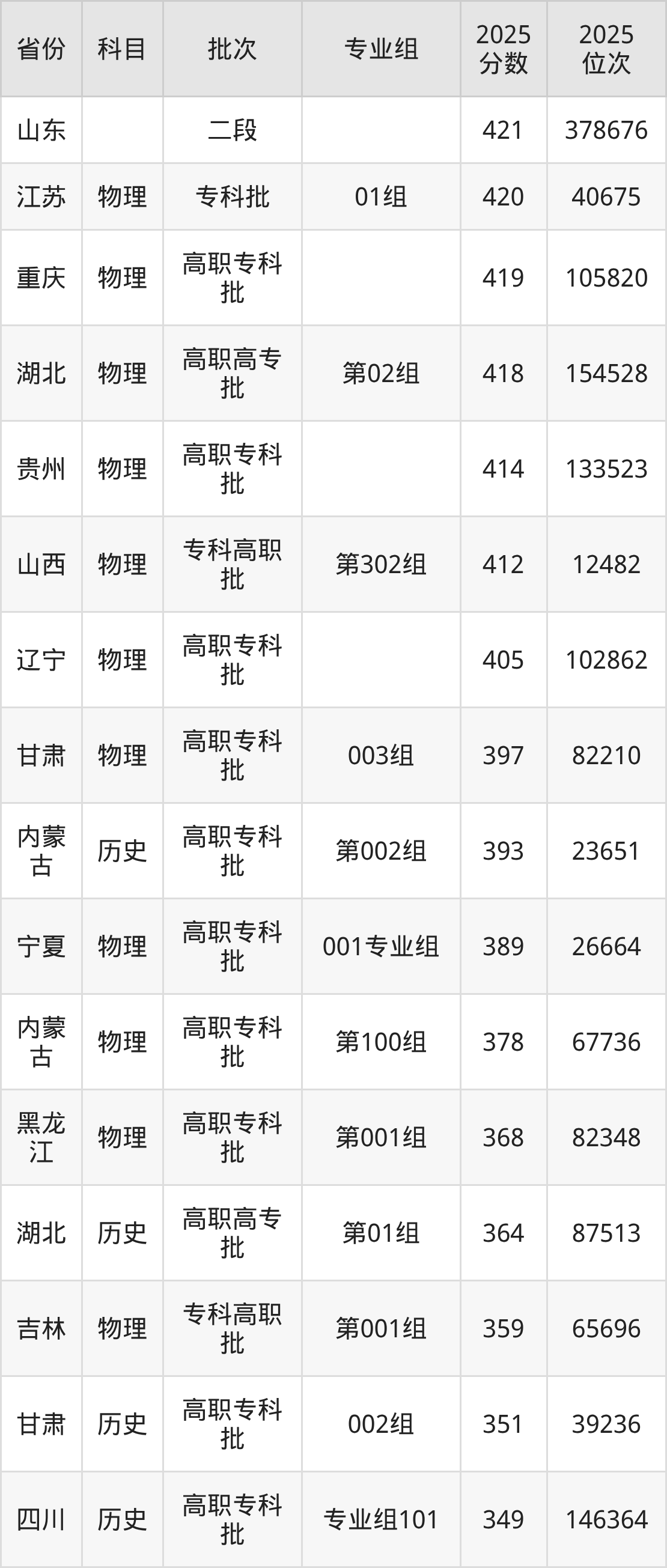 下面是2025年黄河水利职业技术大学在全国各省录取最低分数据及位次,各位考生也可作为一个参考。