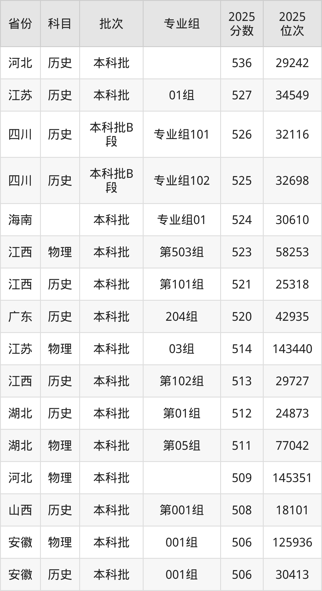 2025年荆楚理工学院全国录取分数线378分到536分,录取最高在河北(历史)、录取最低在新疆(理科)。