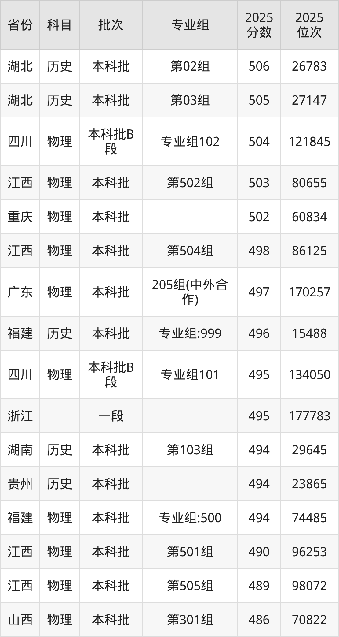 3、外国语言文学类:506分、位次173002名;