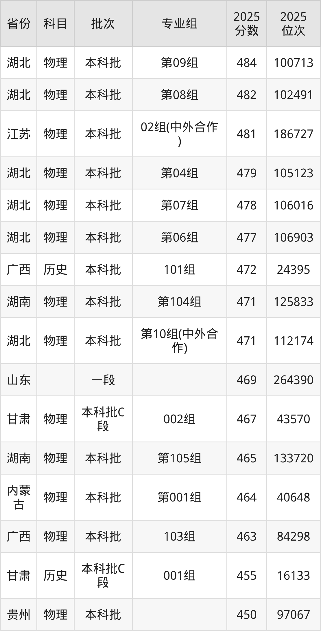 2025年荆楚理工学院各专业录取分数线从469分到517分不等,录取分数线最低的专业是印刷工程、植物科学与技术;录取分数线最高的专业是财务管理。本文将展示荆楚理工学院所有专业最低分数线及位次,供2026届高考生参考。