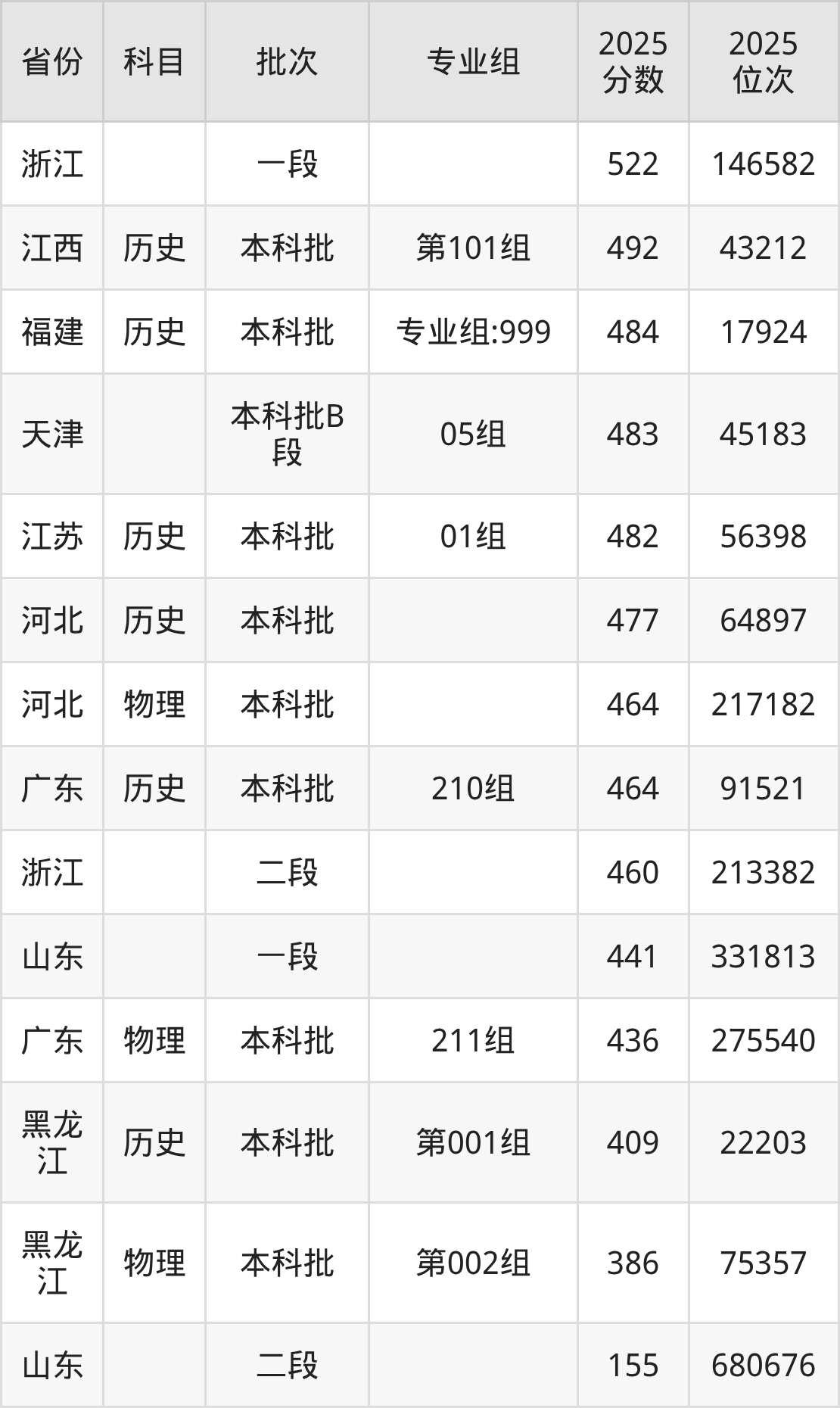 下面是2025年青岛电影学院在全国各省录取最低分数据及位次,各位考生也可作为一个参考。
