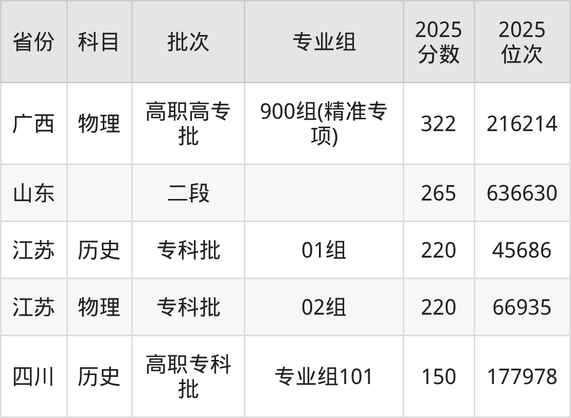 参考2025年山东省高考招录数据,按照分数线从高到低依次为大家展示广西建设职业技术学院各个专业录取分数线。