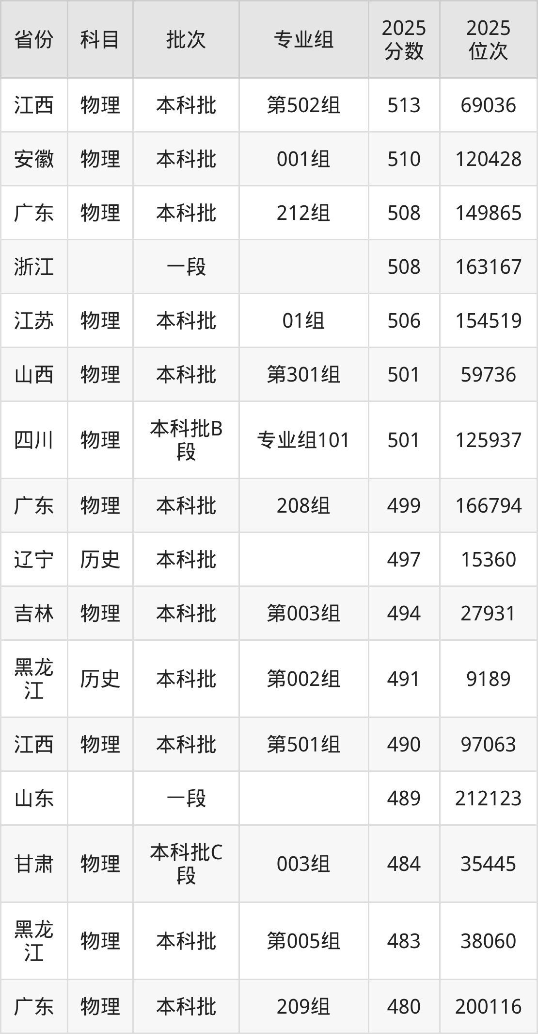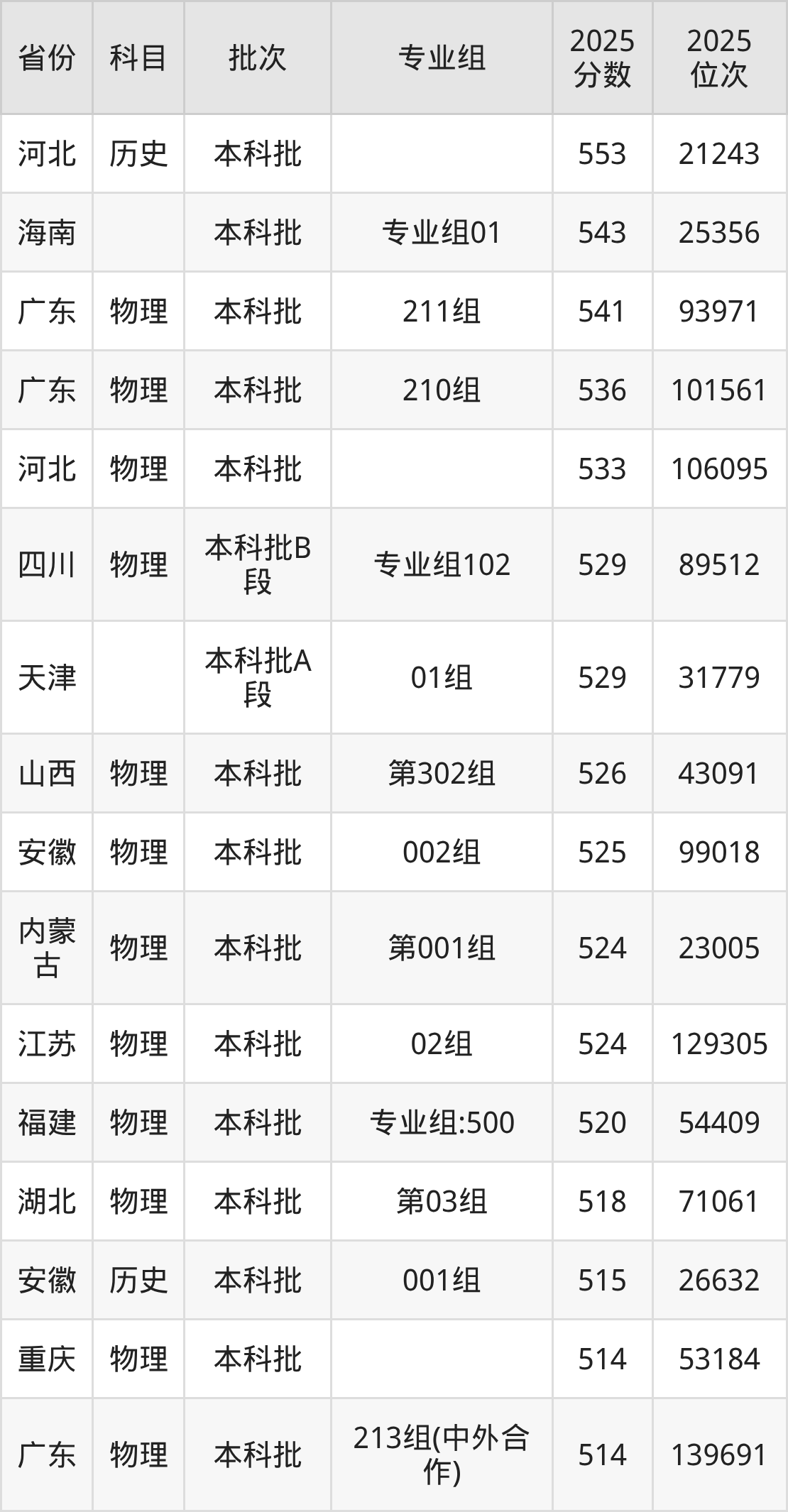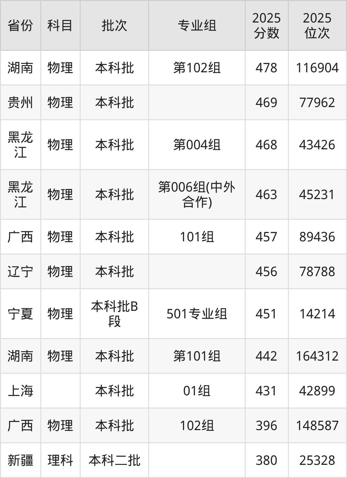 下面是2025年沈阳化工大学在全国各省录取最低分数据及位次,各位考生也可作为一个参考。