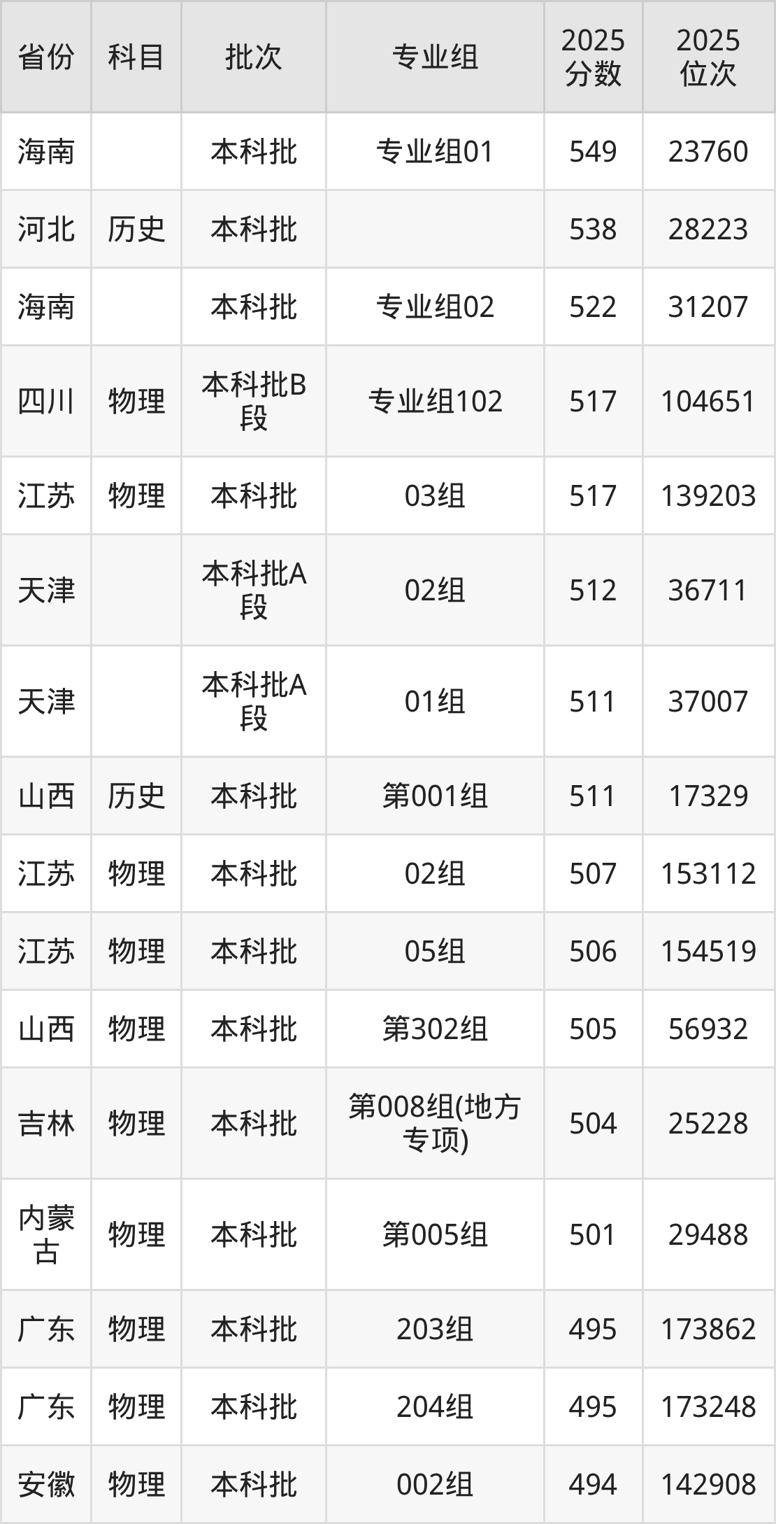 12、测绘工程:492分、位次205043名;
