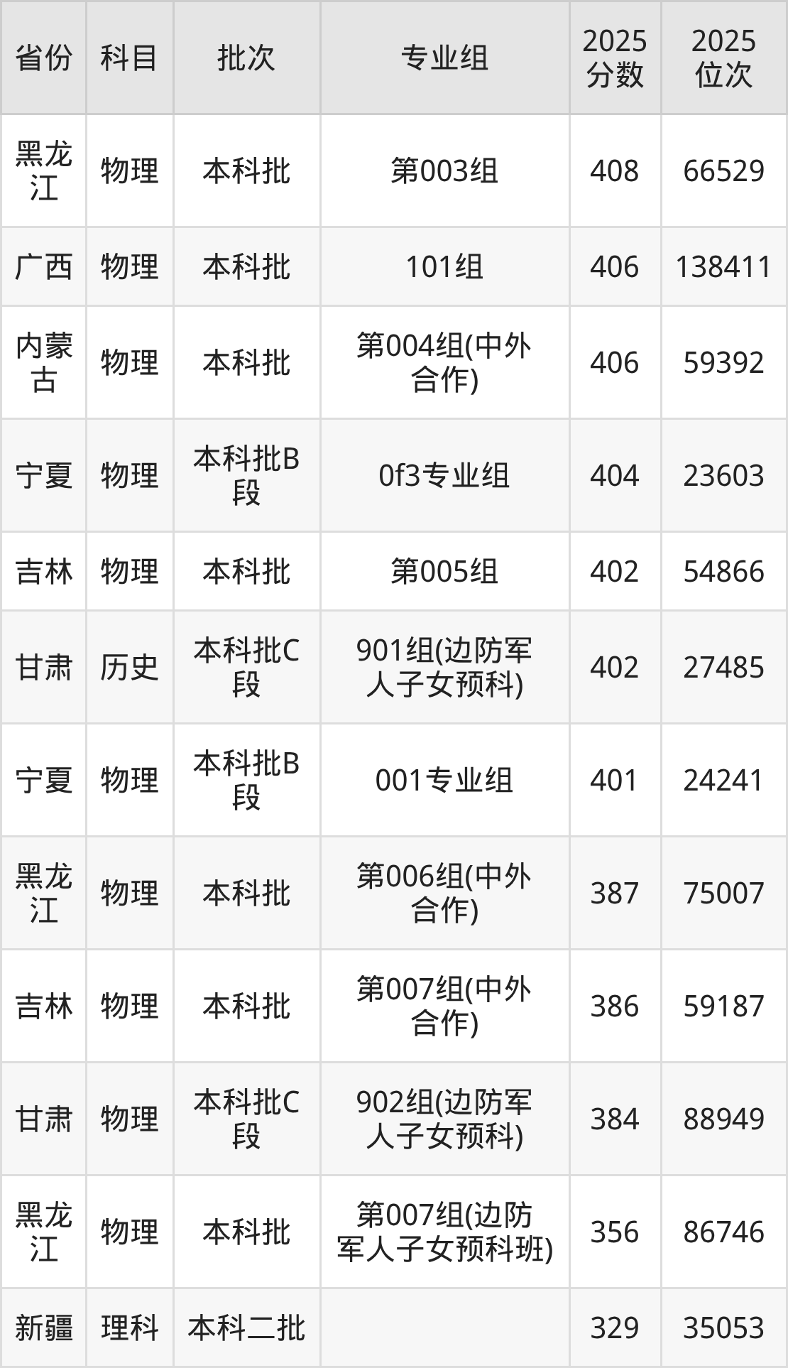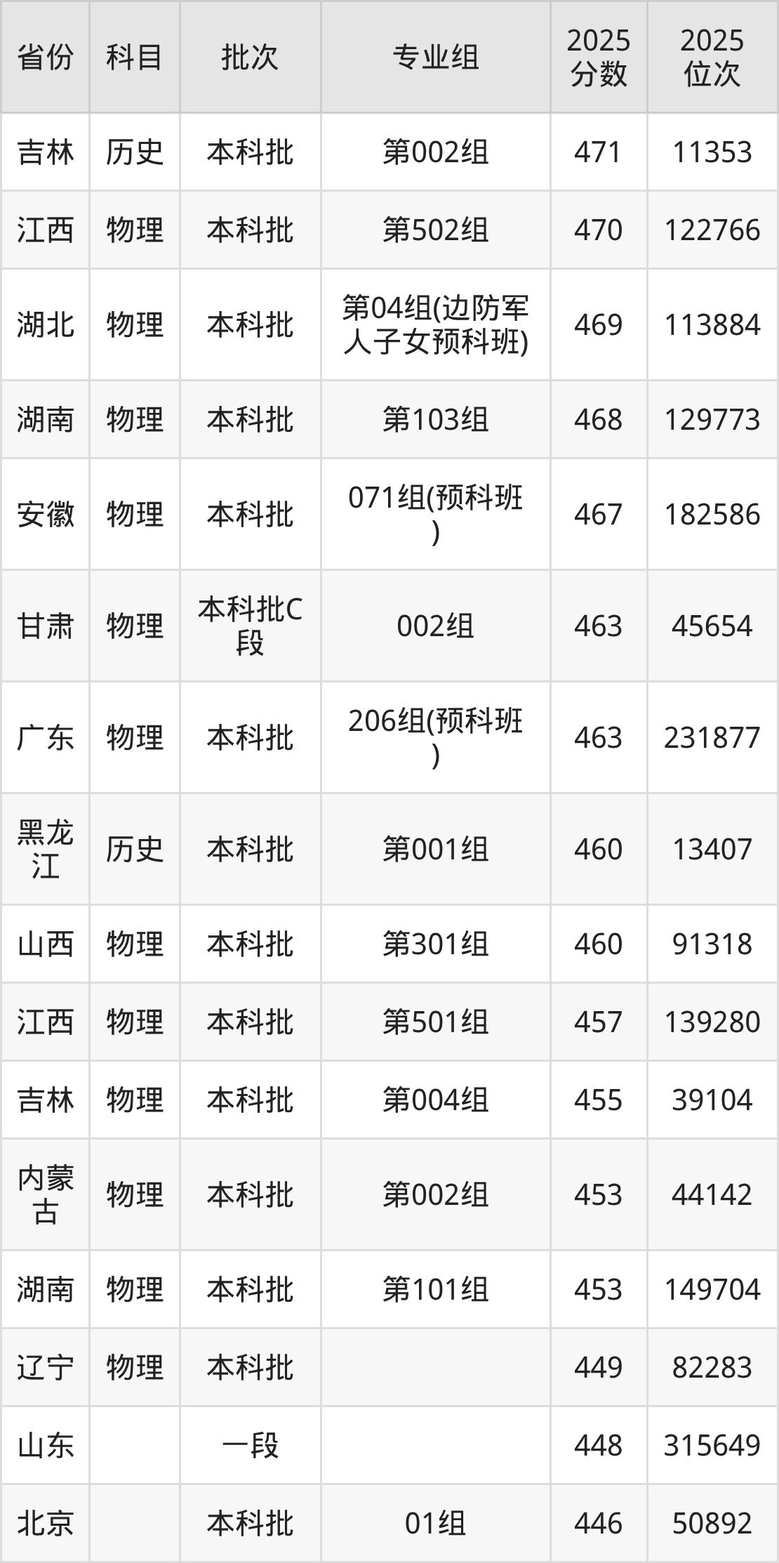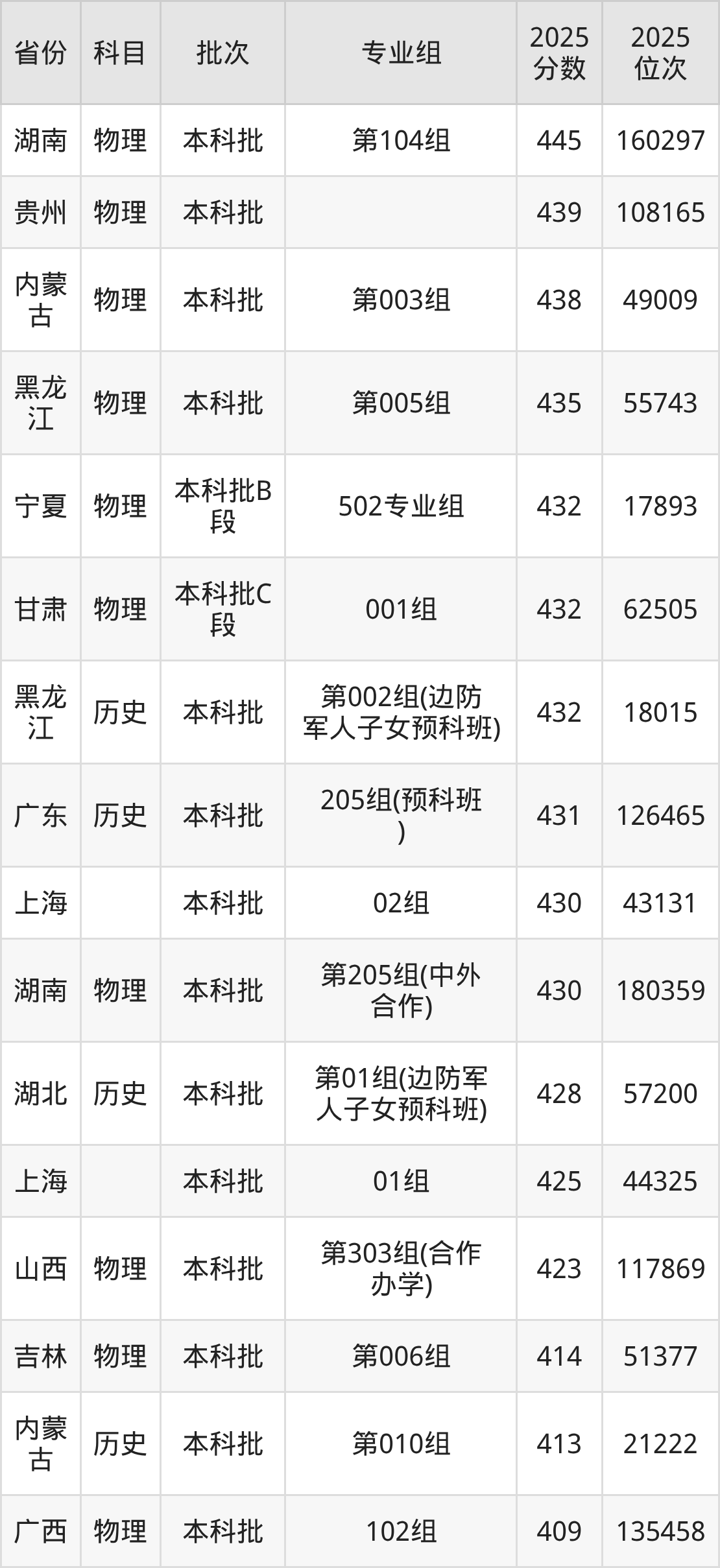 | 本科预科班 | 不限 | (边防军人子 女预科班) |