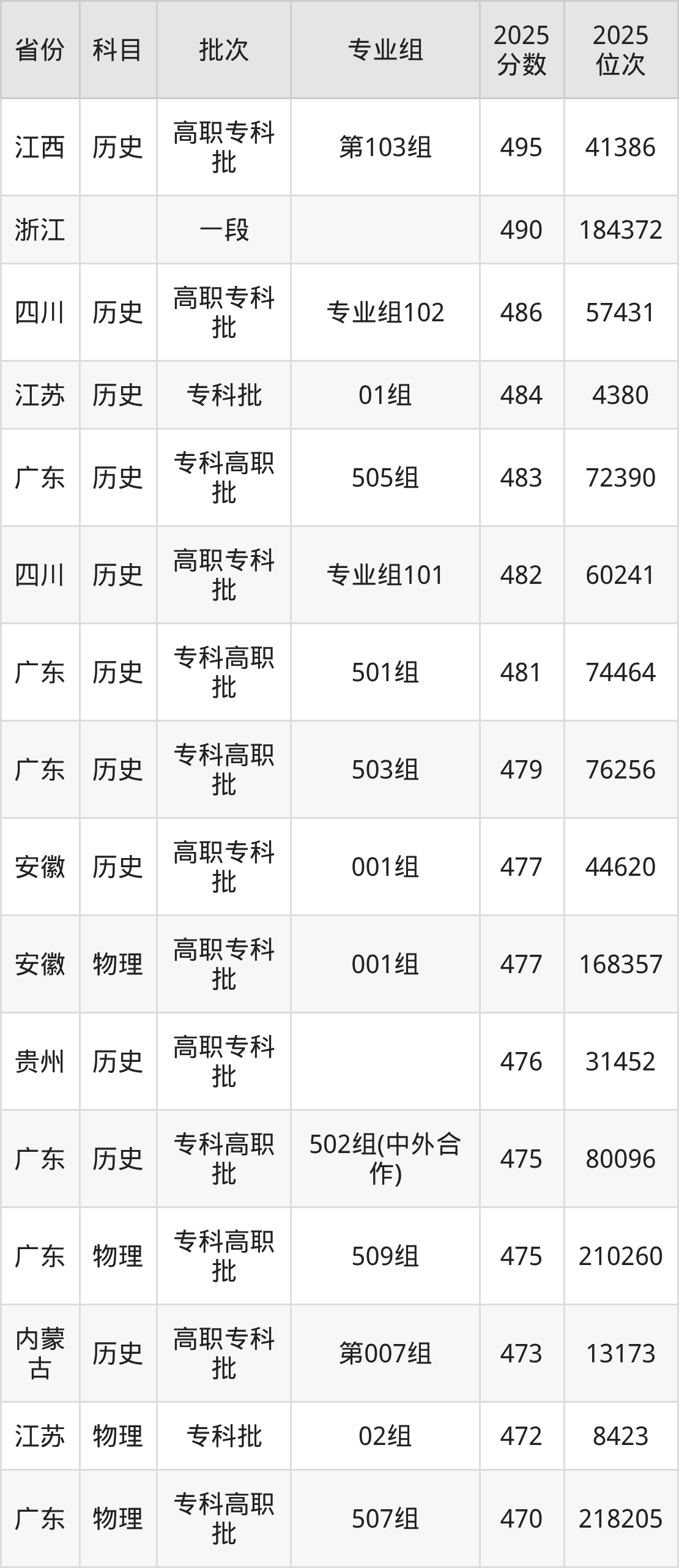 2025年广州民航职业技术学院全国录取分数线285分到495分,录取最高在江西(第103组)、录取最低在新疆(理科)。