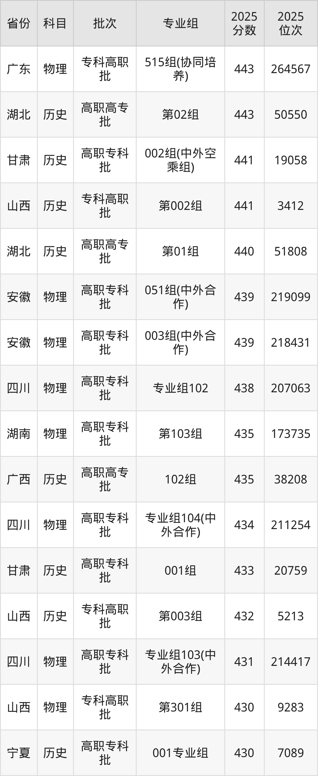 参考2025年山东省高考招录数据,按照分数线从高到低依次为大家展示广州民航职业技术学院各个专业录取分数线。