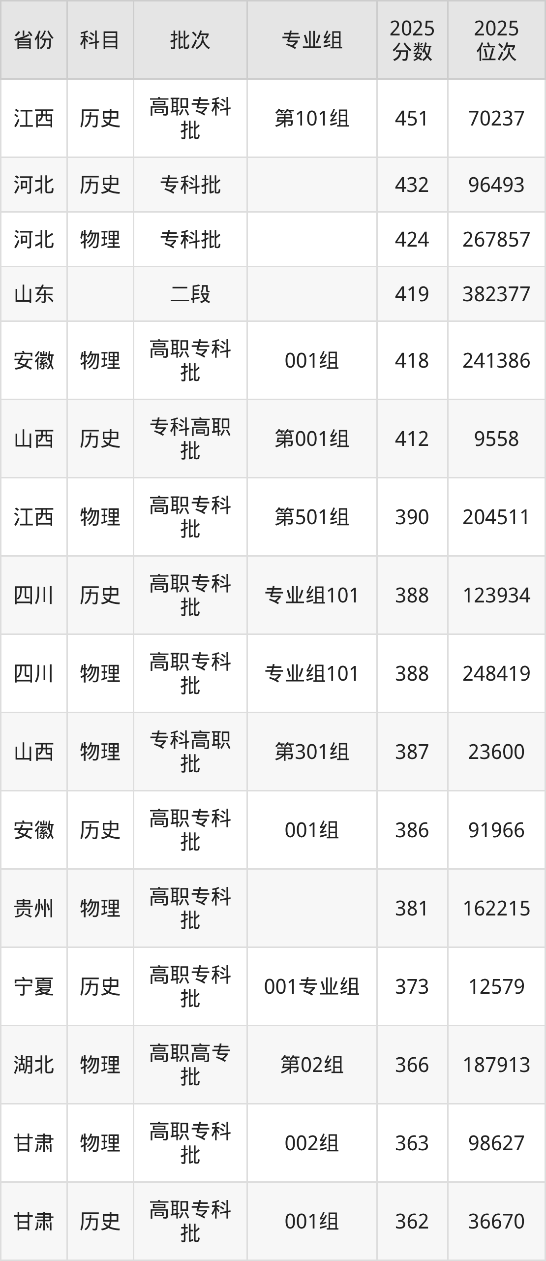 参考2025年山东省高考招录数据,按照分数线从高到低依次为大家展示陕西机电职业技术学院各个专业录取分数线。