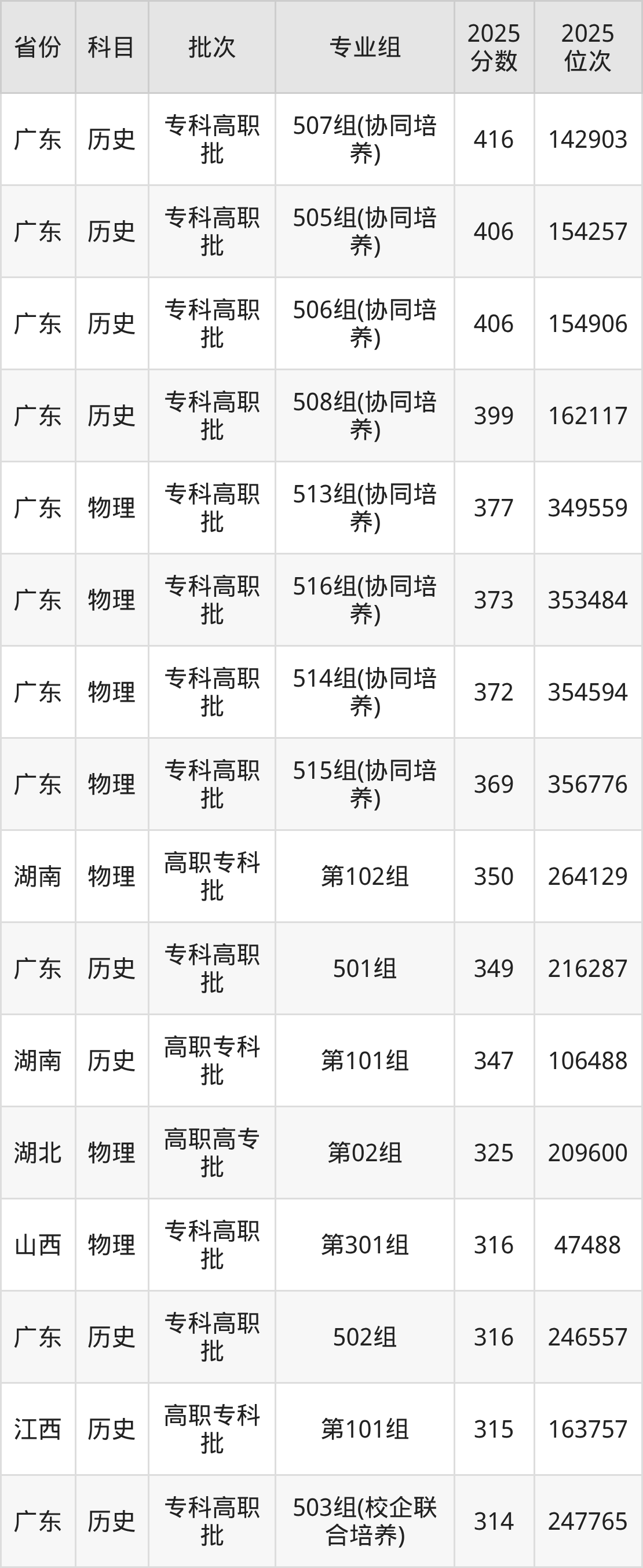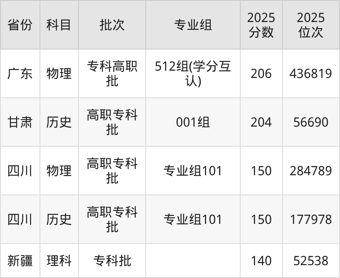 2025年广东岭南职业技术学院全国录取分数线140分到416分,录取最高在广东(507组(协同培养))、录取最低在新疆(理科)。
