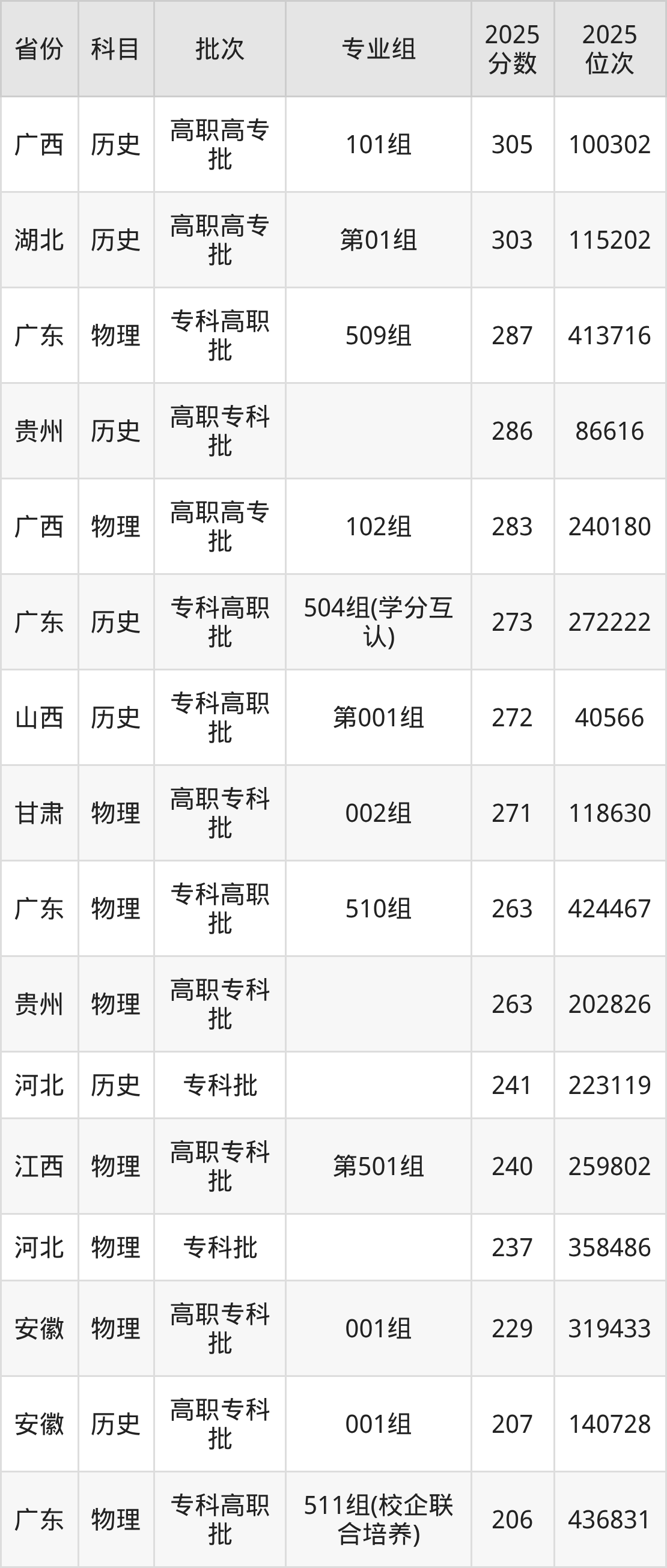 下面是2025年广东岭南职业技术学院在全国各省录取最低分数据及位次,各位考生也可作为一个参考。