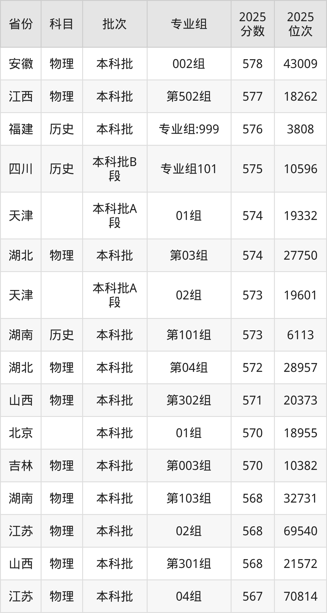 15、公共管理类:570分、位次53126名;