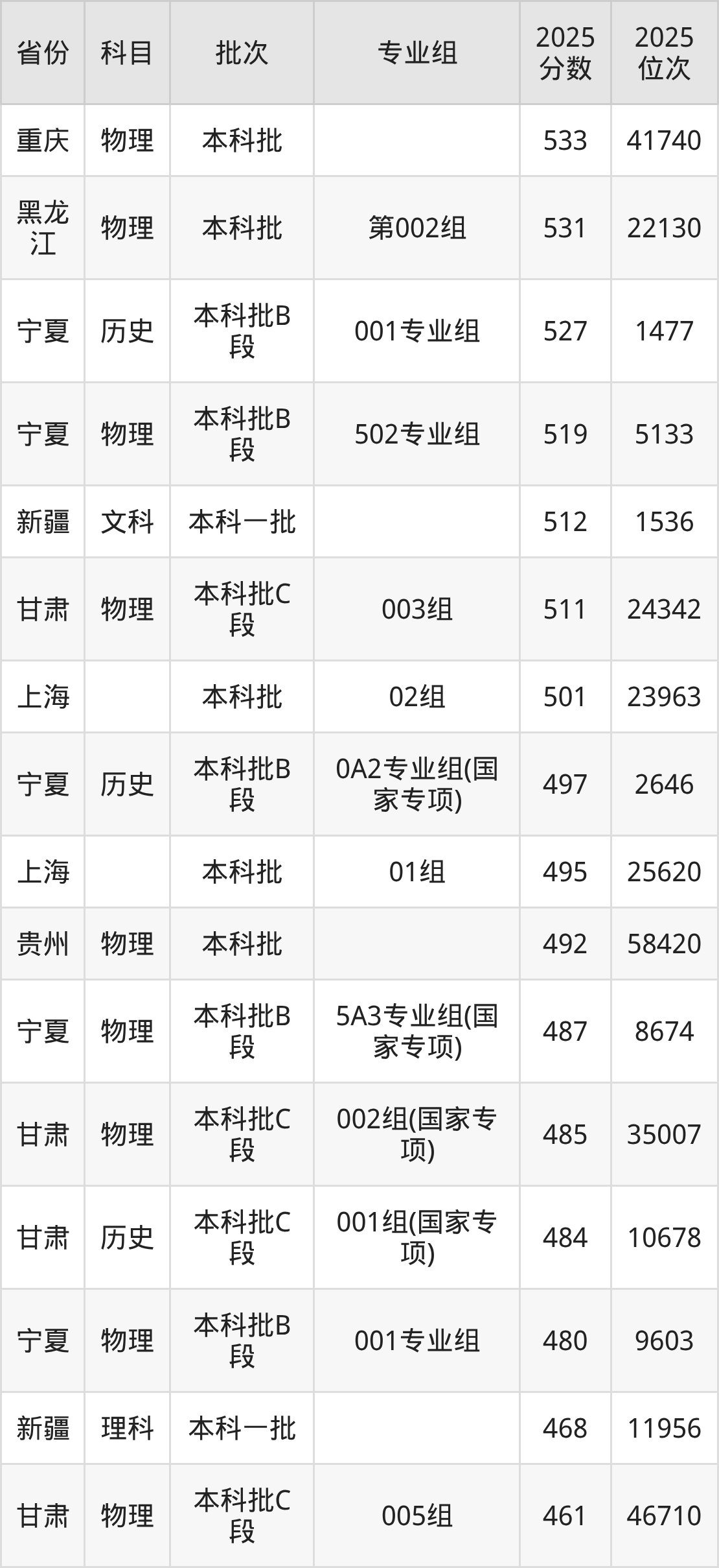 5、工商管理类:593分、位次30355名;