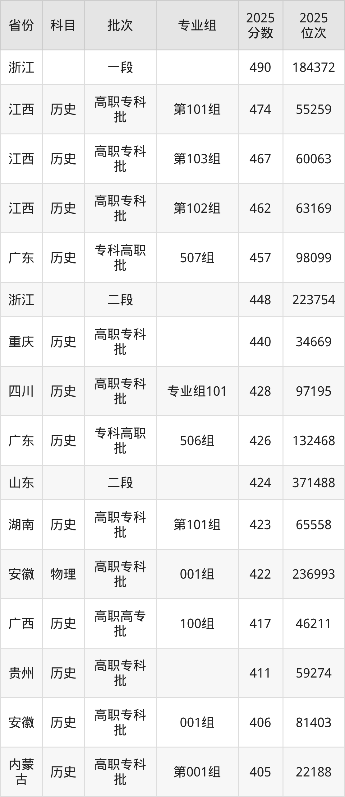 下面是2025年宜春职业技术学院在全国各省录取最低分数据及位次,各位考生也可作为一个参考。