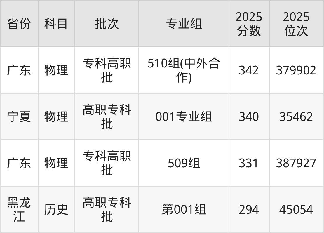 2025年宜春职业技术学院全国录取分数线294分到490分,录取最高在浙江、录取最低在黑龙江(第001组)。
