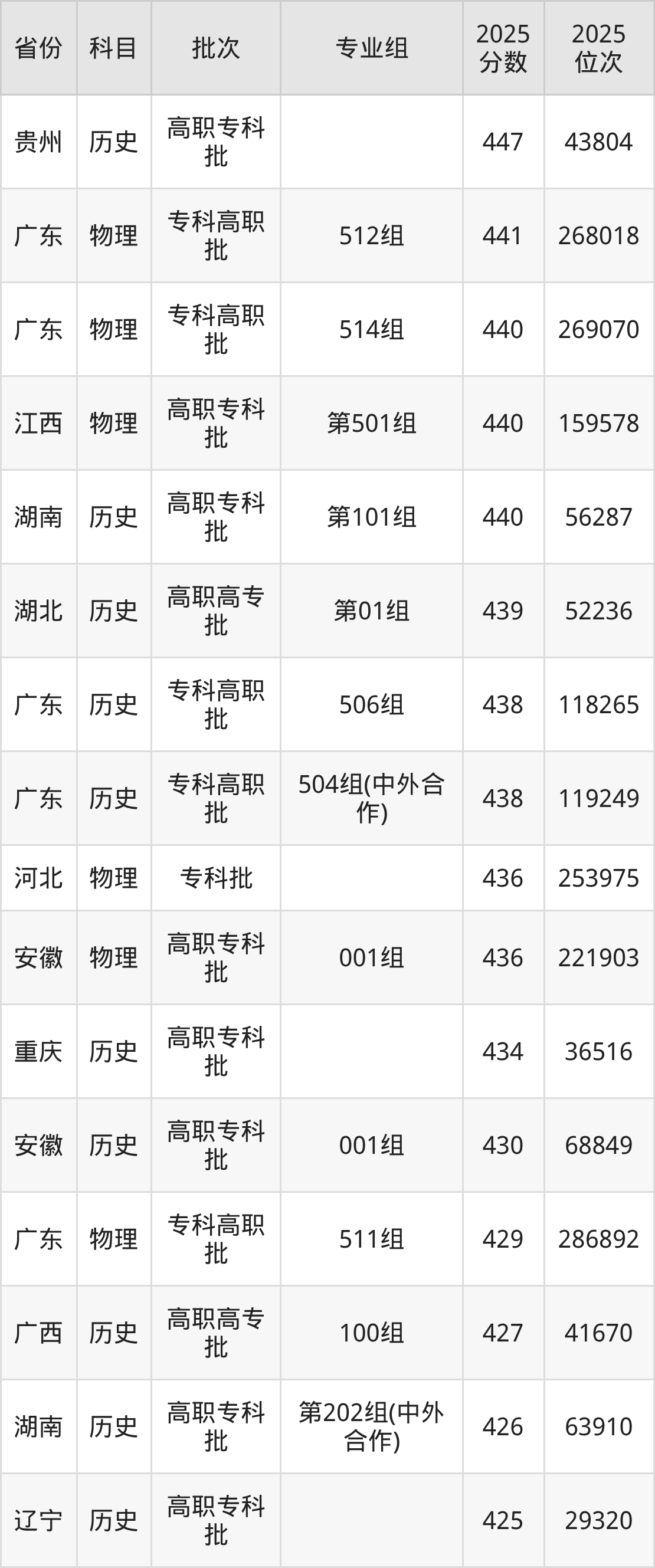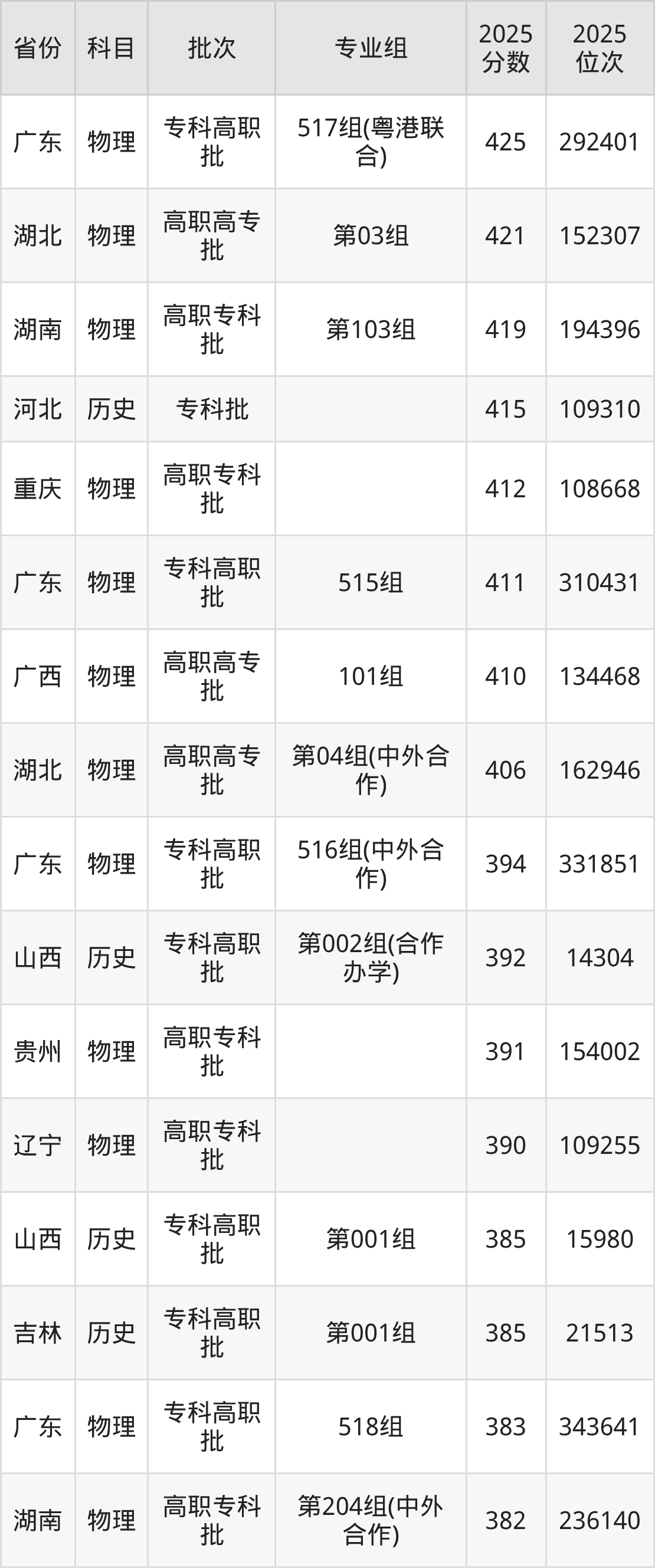 下面是2025年广东科学技术职业学院在全国各省录取最低分数据及位次,各位考生也可作为一个参考。
